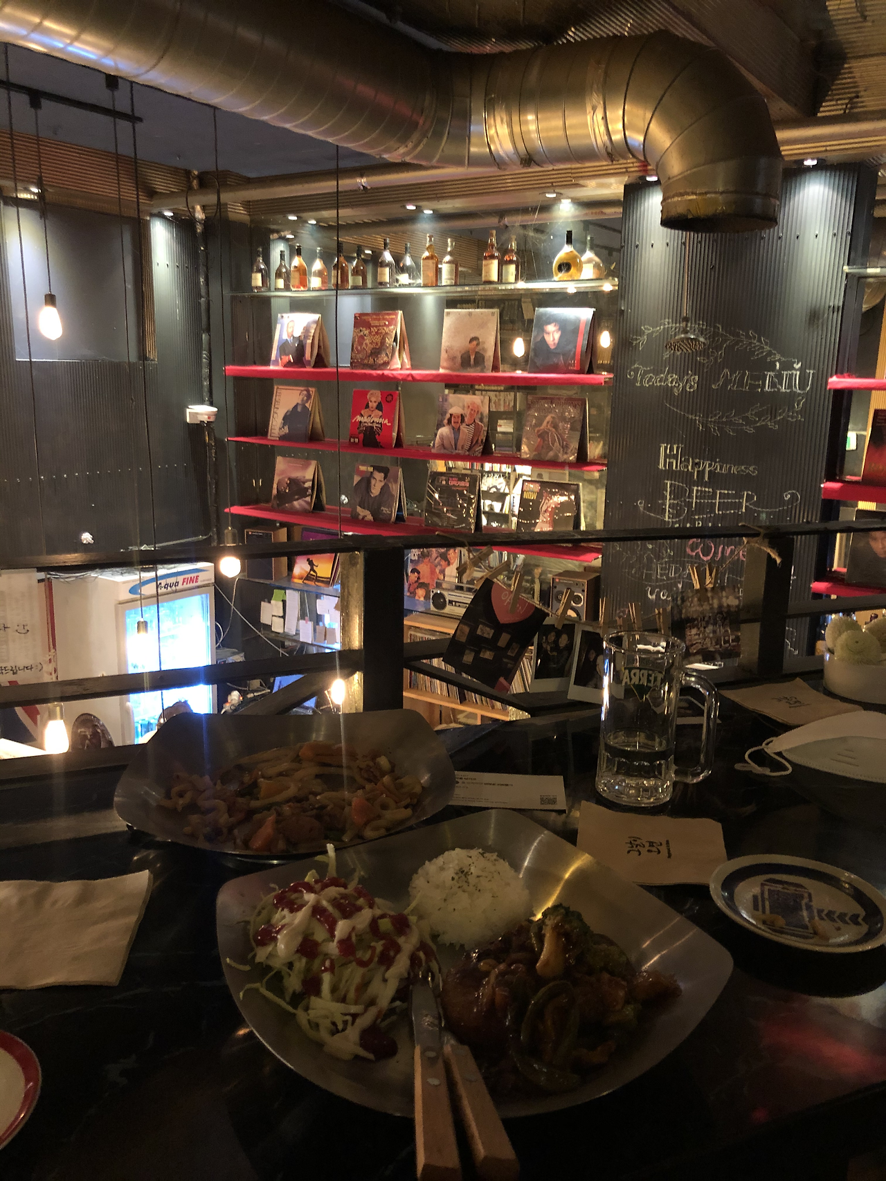술 마시고 싶은데 비건 안주가 필요하다면, 추천. 식당보다는 바 느낌. 지하에 있는데 천장이 높은 신기한 구조. 미국 드라마 <FRIENDS> 커피 하우스와 비슷한 느낌. LP판이 벽면을 가득 채우고, 좋은 음악이 흘러나온다. 사장님도 매우 친절하심. 제로페이 가능.