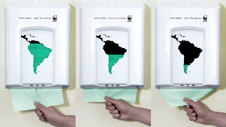 유명한 친환경 제품 디자인 WWF의 핸드 타월 케이스도 좋은 예다. 시각적인 효과를 가져와 시민들이 손을 씻은 후 핸드 타월을 적게 이용하게끔 유도하는 센스 있는 제품 디자인이다.