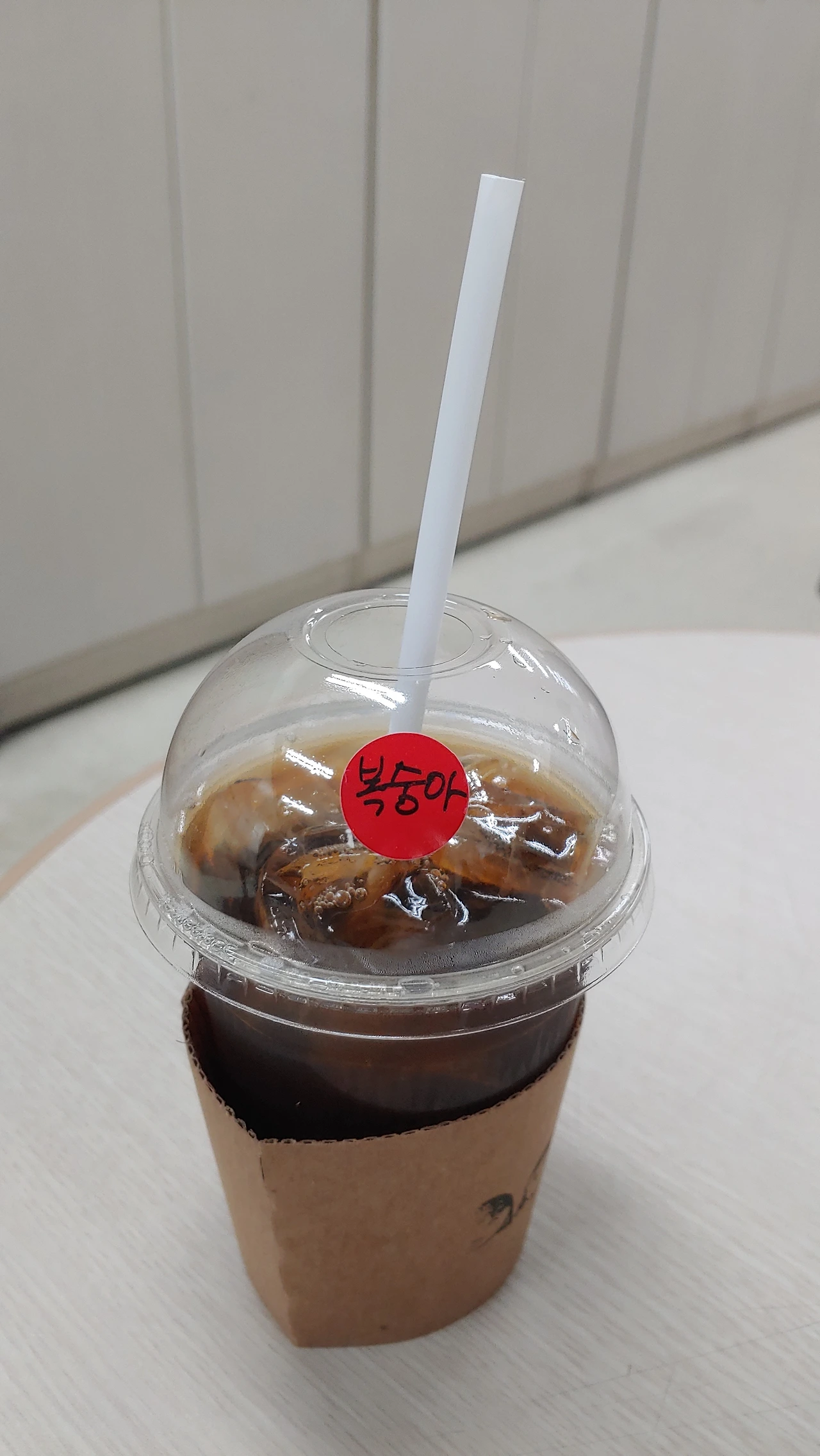 같이 근무하는 여직원이 점심사줘서 고맙다며 사주네요. 커피를 안마시니까 복숭아아이스티로 지맘대로 사다 주네요.