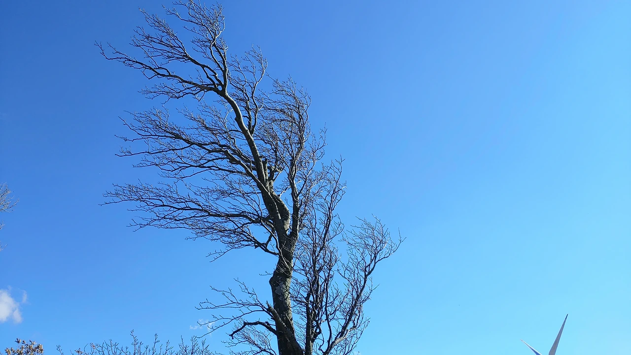 해발이 천미터나 되니 나무들이 죄 바람부는데로 기울어져 있다.