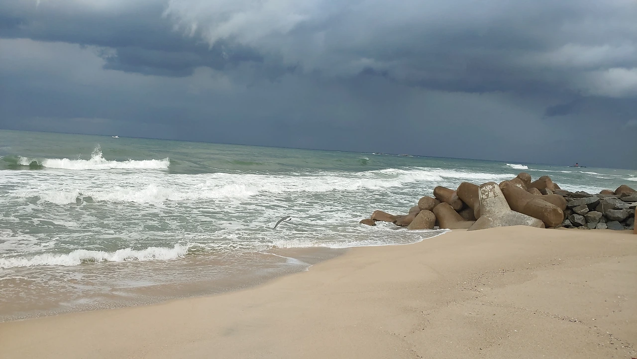 어둠이 짙어가는 바닷가 모래기슭