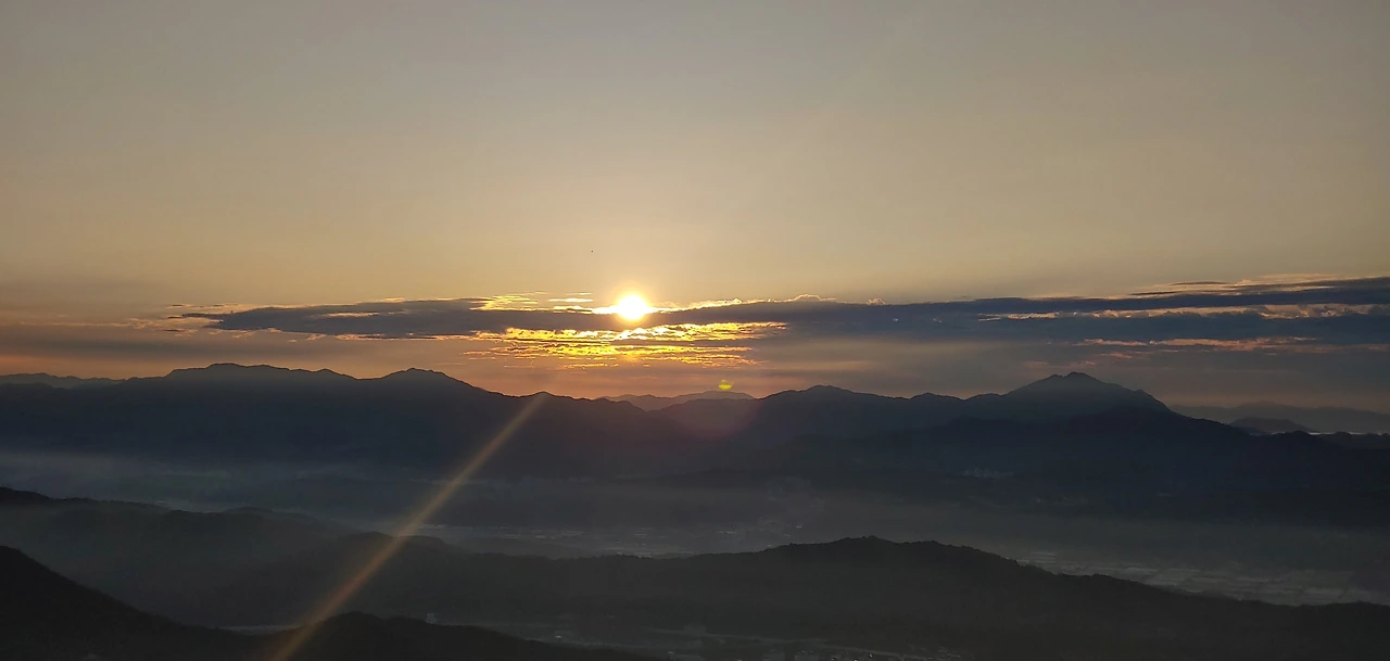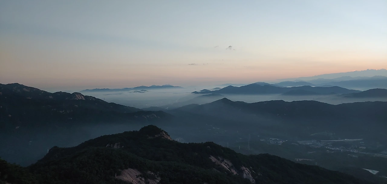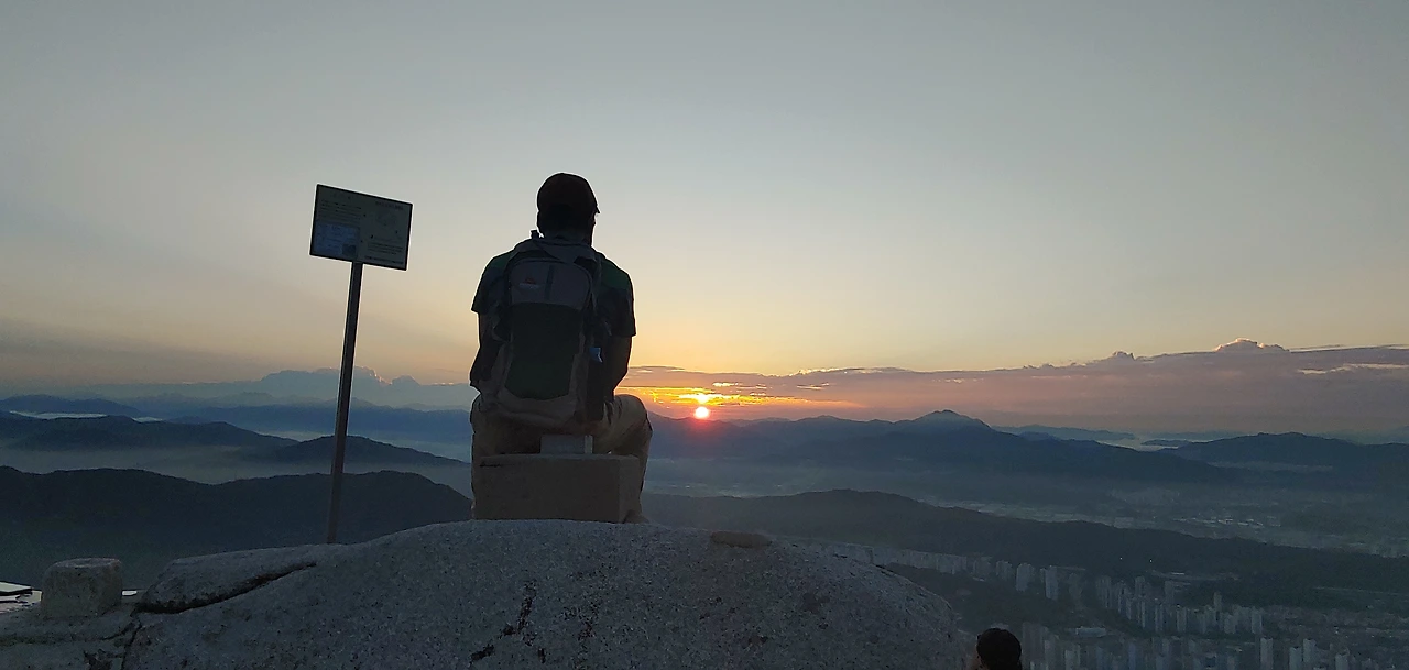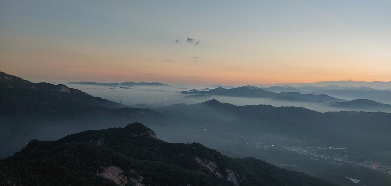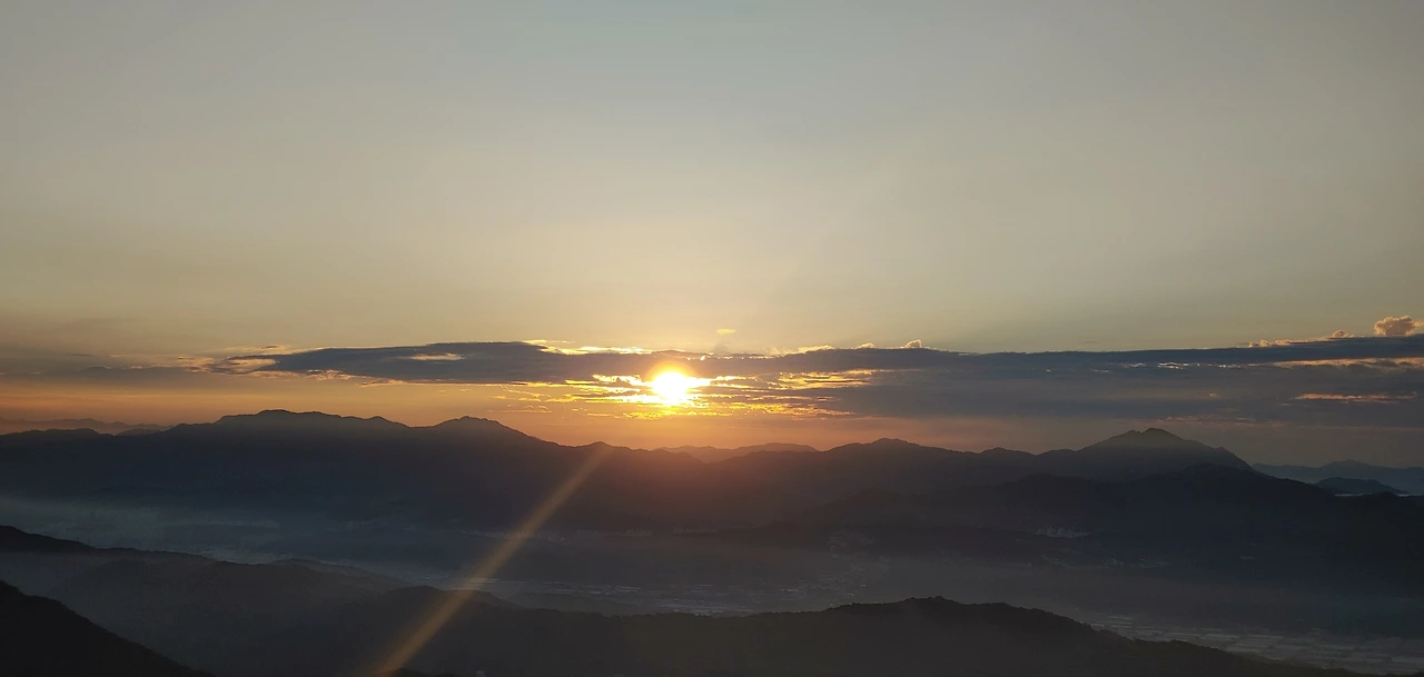 어두운 산길을 스마트폰 후레쉬를 작동해서 길을 밝히고 산을 오르다보면 서서히 산정상에서 부터 어둠끝에서 희미한 빛줄기를 가느다랗게 뽑아내는 여명이 나타난다.