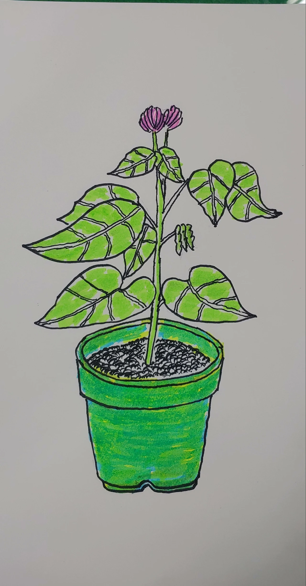 (연필로 밑그림을 그린 후 윤곽을 프러스펜으로 한번 더긋고나서 색칠은 형광펜으로 칠해봤습니다)