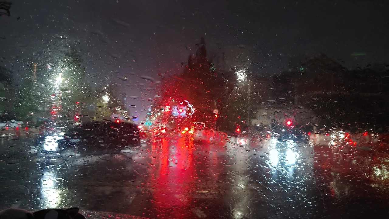 비를 맞고 거리를 걷는다고