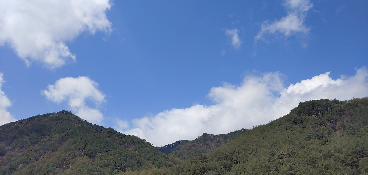 봄비가 모처럼 촉촉이 내리다 그치고 난 후 아직 밀려나지 못한 회색빛 비구름 사이로 부챗살 같은 아침 햇살이 환하게 비치니 야트막한 작은 산 공기도 오늘따라 유난히 더 상쾌하고 짙푸르렀다.