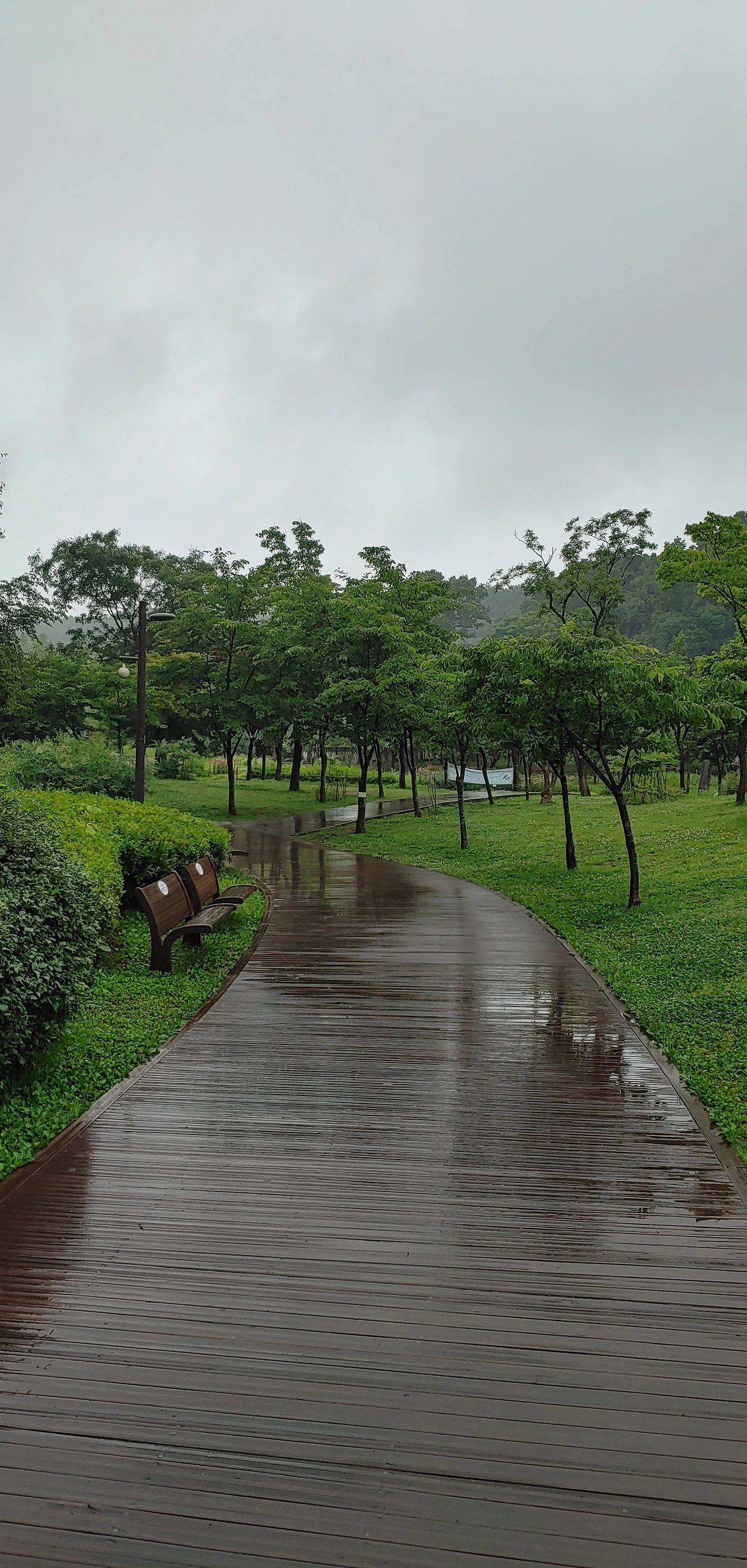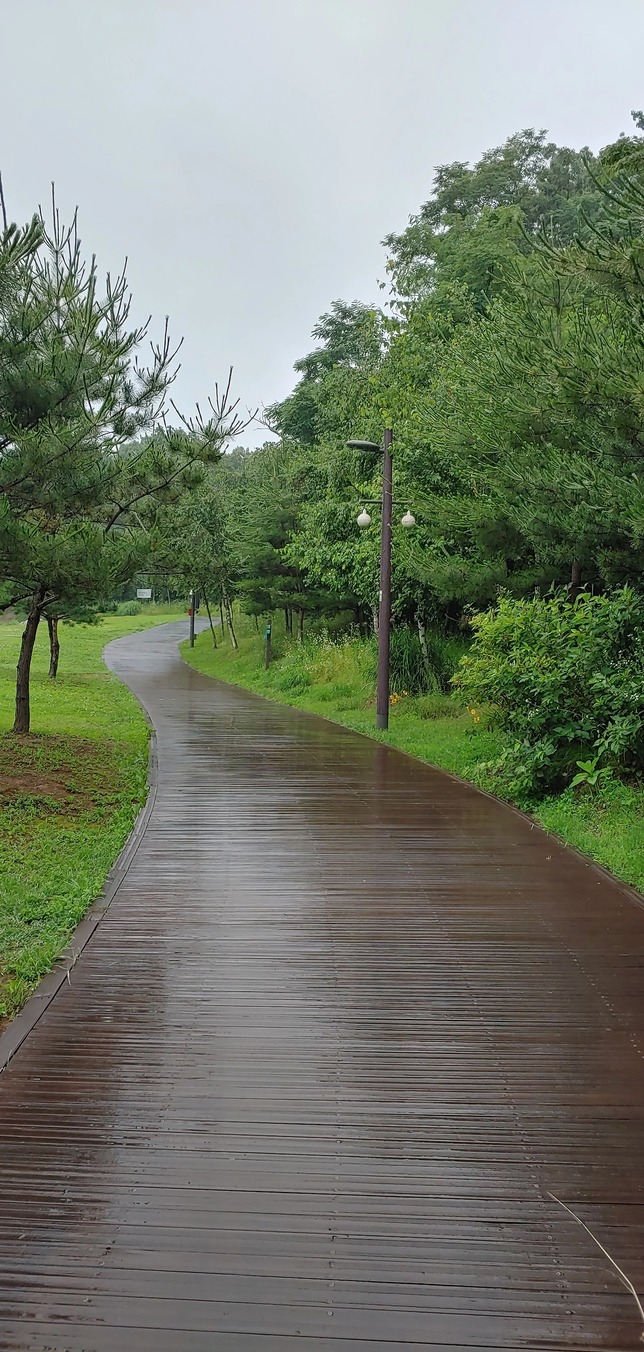 꿈의 숲 부근에 오 니까 이곳도 산이라고 더 굵은 보슬비로 변해 버려 신발 코 부근까지 다 젖어버렸습니다.