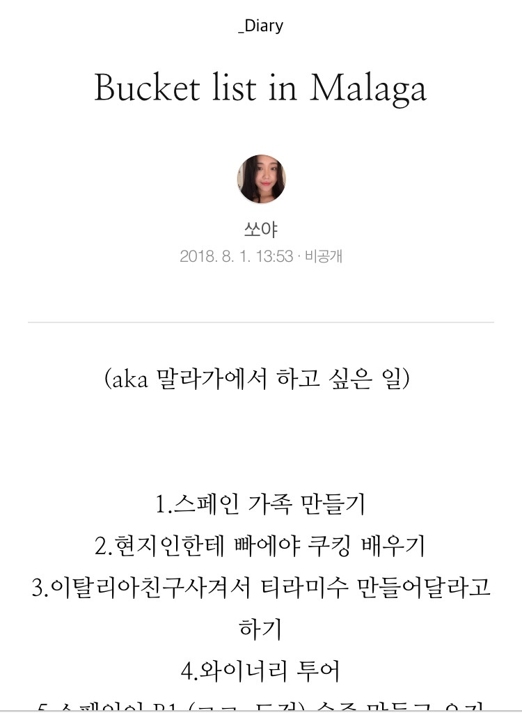 그런 의미에서 나의 이 버킷리스트는 성공적이었다고 할 수 있겠다. 내가 말라가에서 친해졌던 대부분의 외국인들은 한국인과 처음 어울려보는 이들이었기 때문에. 그들에게는 한국인이 더 이상 낯가림이 많고 조용한 민족만은 아니라는 인식이 자리 잡았을 테지.