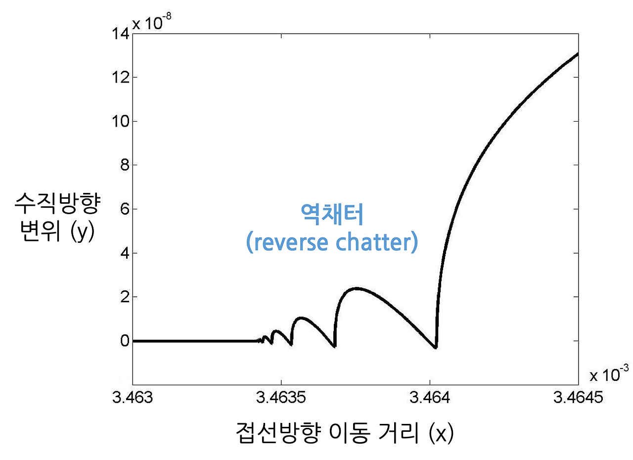 예를 들어 사람이 공을 가슴 높이에서 떨어뜨리고 공이 멈출 때까지 위아래로 튕기는 것을 본다고 합시다. 공은 시간이 지나면서 지면에서 떠오르는 높이가 점차 낮아지다가 결국 정지하는 채터(chatter) 현상을 보입니다. 이와 반대로 시간이 지날수록 오히려 지면에서 더 높이 떠오르는 경우를 역채터(reverse chatter) 현상이라고 합니다.
