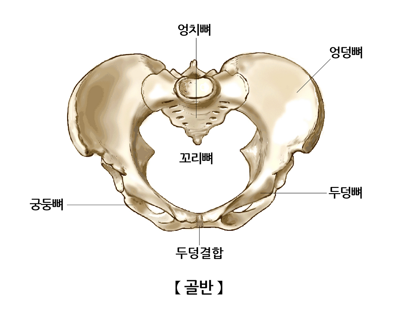 - pelvis: 골반 - 궁둥뼈(좌골), 엉덩뼈(장골), 두덩뼈(치골)로 구성