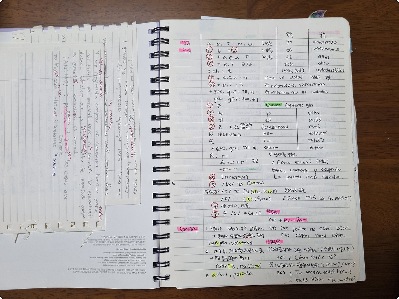 첫 번째 페이지다. 이때는 어느 정도 스페인어의 형태를 무식하게 익혀뒀을 때라 어렴풋이 머릿속에 날아다녀 어떻게 정리를 할지 생각을 하며 필기를 해나갔던 것 같다.