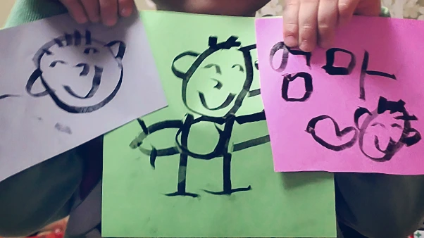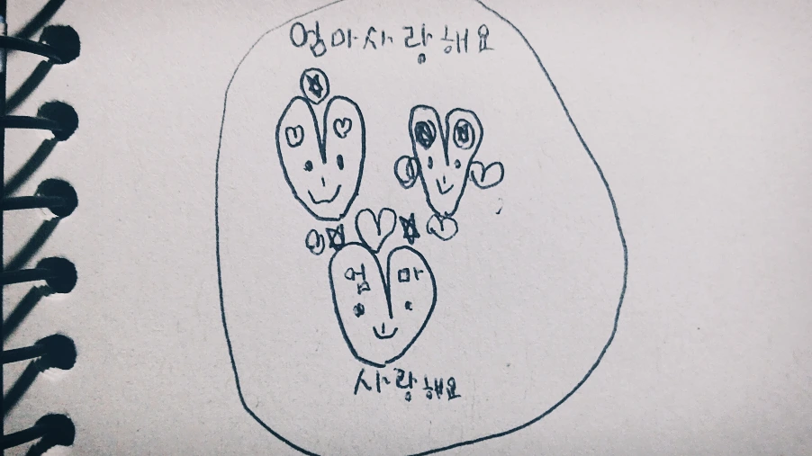 나는 나와 내 아이 그리고 내 가정을 똑바로 지키고 싶단 생각이 들었다. 그래서 그간 입원 수속 중에도 도망치며 미뤄왔던 대학병원 입원 치료를 4년 전에 받고 나왔다. 퇴원 후에도 지속적인 치료를 열심히 받고 있다. 치료를 받으며 내가 평온해질수록 제법 어엿하게 성장한 내 꼬마 아이 그림에도 변화가 생겼다. 항상 빗속에 우산 없이 먹구름 아래에 서서 울고 있던 엄마 얼굴이 이젠 해님 아래에서 하트를 뿜 뿜 뿜으며 온 가득 미소를 머금고 있다.