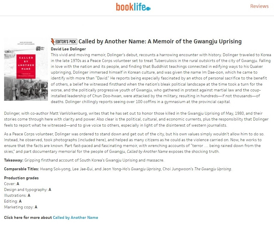 영문판이 영미 출판 최고 잡지 퍼블리셔스 위클리 전문 리뷰어에게 모든 분야 A를 받으며 편집자의 선택 Editor's Choice 에 뽑혔다.