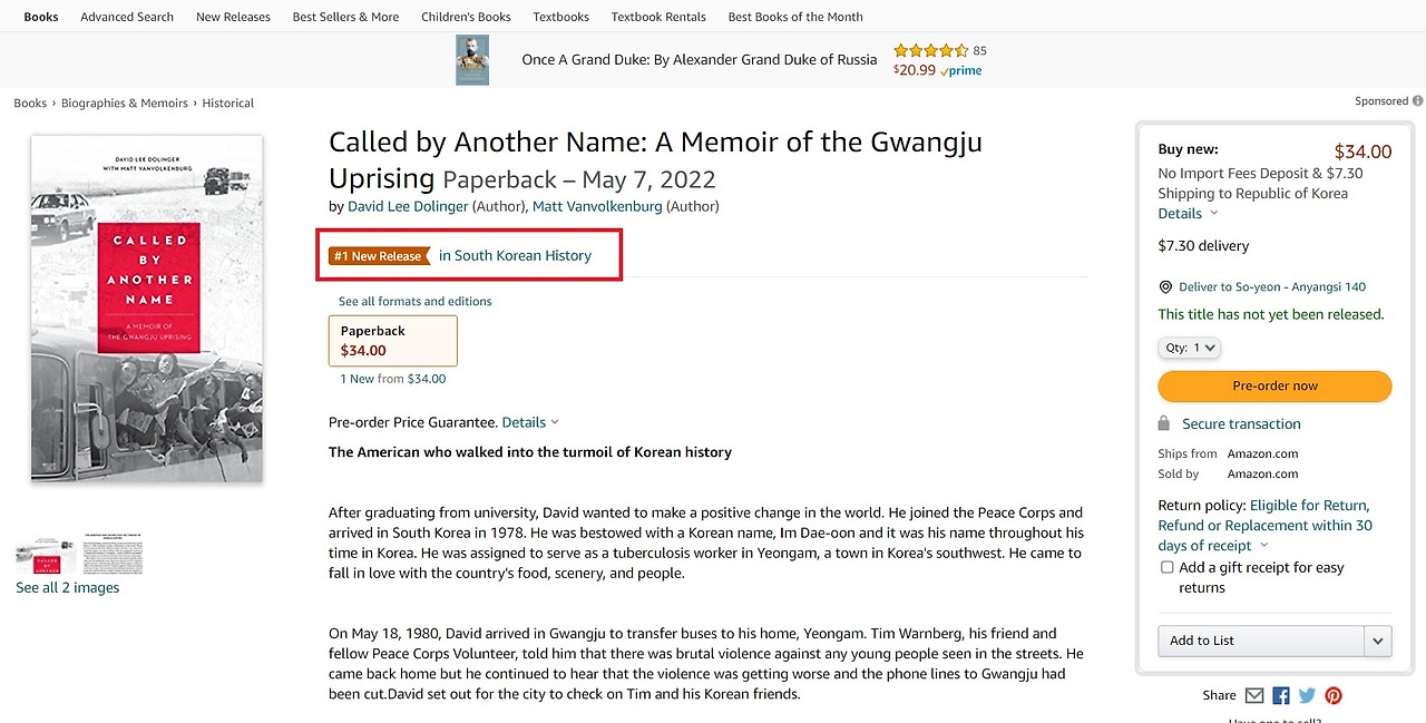 아마존, 한국사 분야 신간 1위. 무심코 들어갔다가 한참을 들여다 보았다.