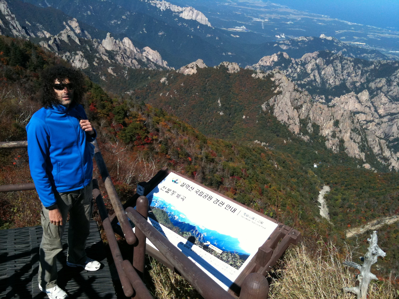 설악산에 오르는 내내 여지껏 그런 모습을 크게 본적이 없는거 같은데^^;;; 이번에는 그가 나를 참 많이 챙겼다. 내 손을 잡아주고 내 등을 뒤에서 밀어주고 기다려주고 내가 늦어지면 100번이고 뒤를 돌아 나를 돌아보고 있는 것이다. 게다가 대한민국의 가을 날씨가 얼마나 좋은가! 기분이 정말 최고로 좋았다. 이런저런 이야기들을 주거니 받거니 하고 점점 육체의 고통이 커질수록 정상은 가까워졌다. 재미있었던 일은 등반 도중 만난 아저씨 아주머니들의 올리비에에 대한 다양한 반응이었다. “어머 파마가 너무 잘나왔다!!파마 한 거지?” 라며 대다수의 아주머니들은 그의 천연곱슬을 파마로 완성한 헤어스타일로 오해하시며 공통 질문공세를 하셨다. “아니요” 라고 답하면 모두들 "어머 외국사람은 파마 안해도 저렇게 되나바 좋겠다" 라시며 감탄들을 하셨다. 그리고 대부분의 아저씨들은 “오! 헬로우!!” 가 공식인사였다! 오이 주시는 분, 육포 주시는 분, 그 외에도 본인들이 싸오신 여러 음식들을 나눠주시는 분들, 정말 많은 분들이 나와 올리비에의 설악산 등반에 큰 도움을 주셨고^^ 다정하게 이것저것을 나눠주는 한국적 정서에 올리비에는 크게 놀라는 듯 했고 굉장히 만족 해 했다. 총 9시간 동안의 등반과 하산을 통해 나는 육체적으로 너무 너무 힘들었지만, 정신적으로는 지난 몇 년 간 가장 건강하게 기분 좋은 시간을 그와 함께 보냈다고 해도 과언이 아니었다. 그리고 산 정상을 오르고 내리는 길에 그간 서로에게 하고 싶었던 많은 이야기들을 좀 더 자연스럽게 깊게 하게 됐고 무엇보다 그 어떤 때보다 우리는 편안한 시간을 보낸거 같았다.