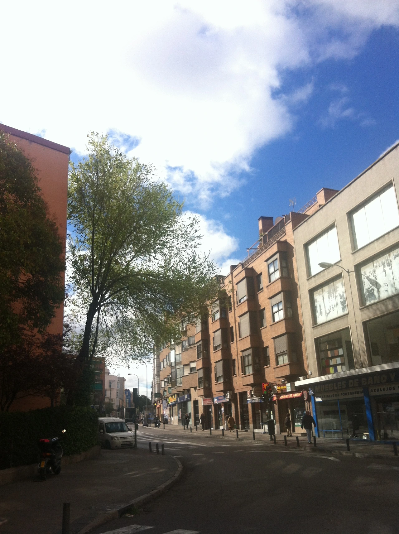 마드리드의 걷다보니 어딘가... 하늘빛과 나무잎의 색깔, 건물의 색깔 모든것이 참 조화롭고 시선을 끌게 한다 마