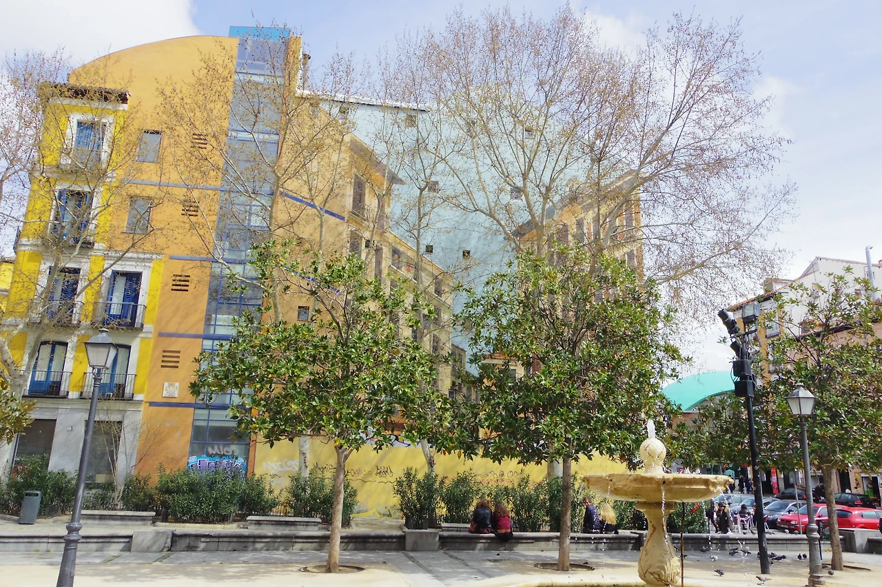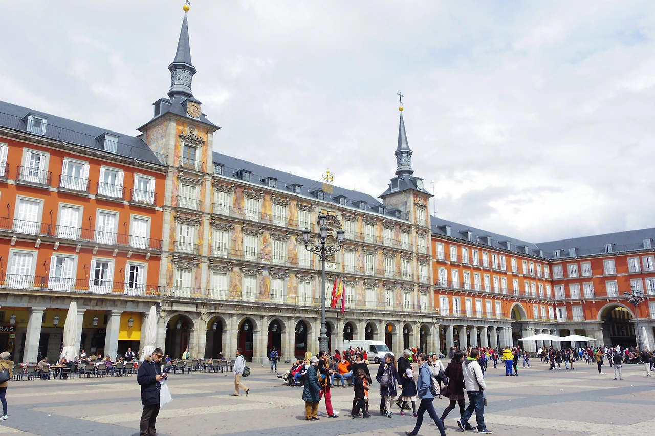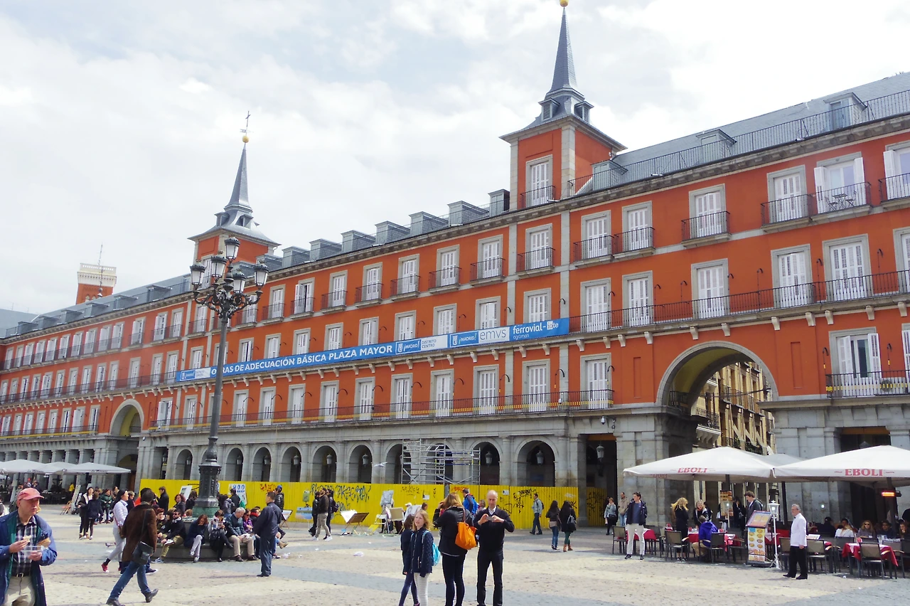 마요르 광장, 산미구엘 시장 옆에 있다. ㄷ 자 모야의 광장. 마