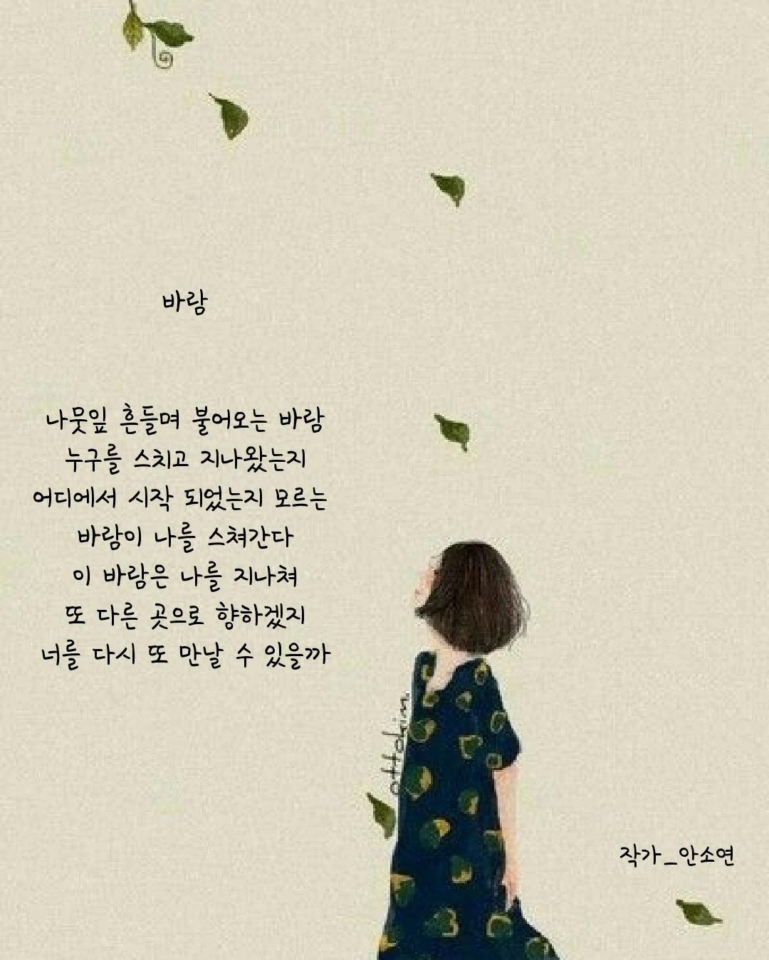 작가 안소연 입니다. 살아가는 길목마다 피어나는 무거우면서 가볍기도 한 고민들을 함께 공감하며 위로해주고 싶습니다. 이 글들이 당신의 손에 그리고 당신의 마음 깊이 닿기를...