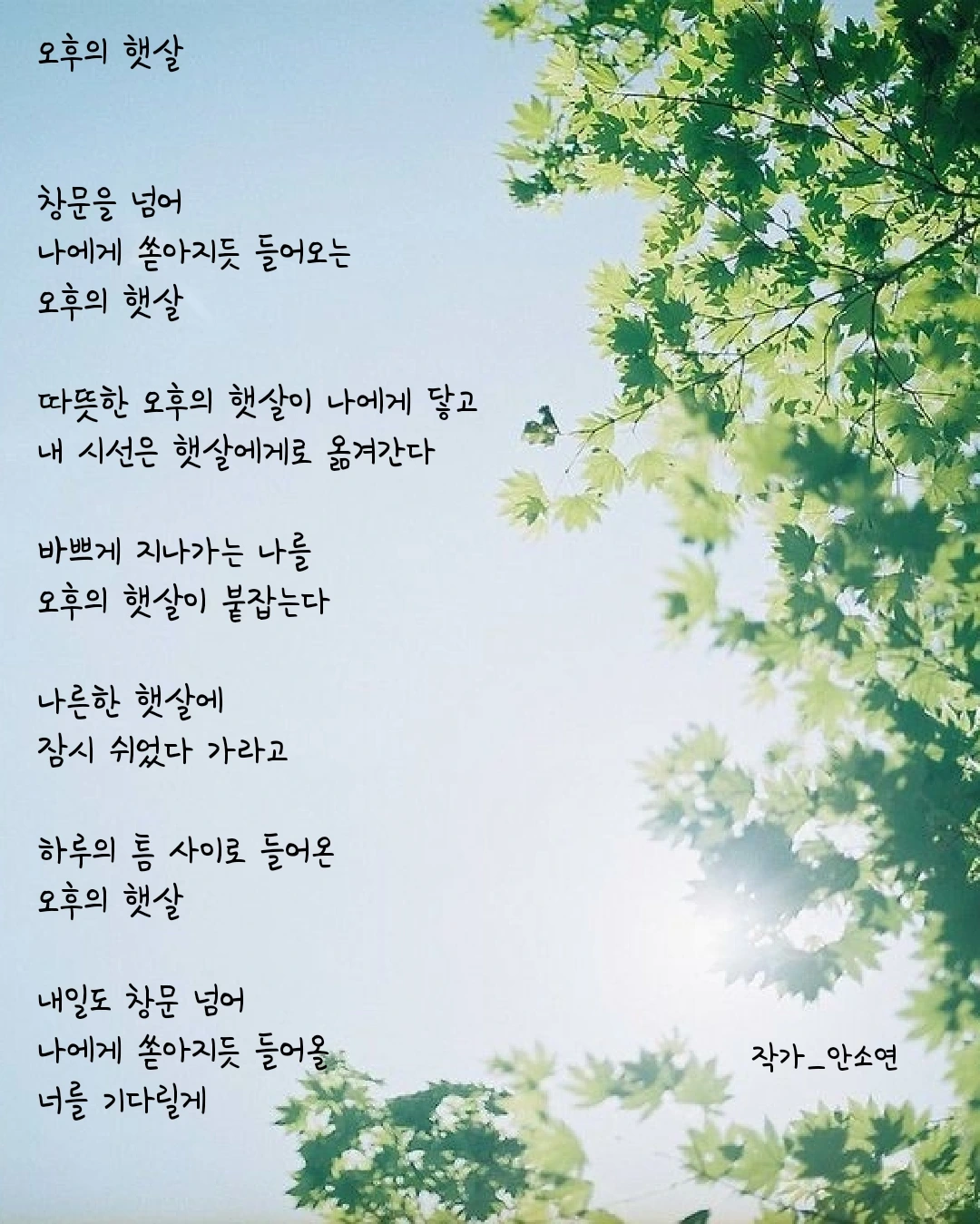 내 시선은 햇살에게로 옮겨간다