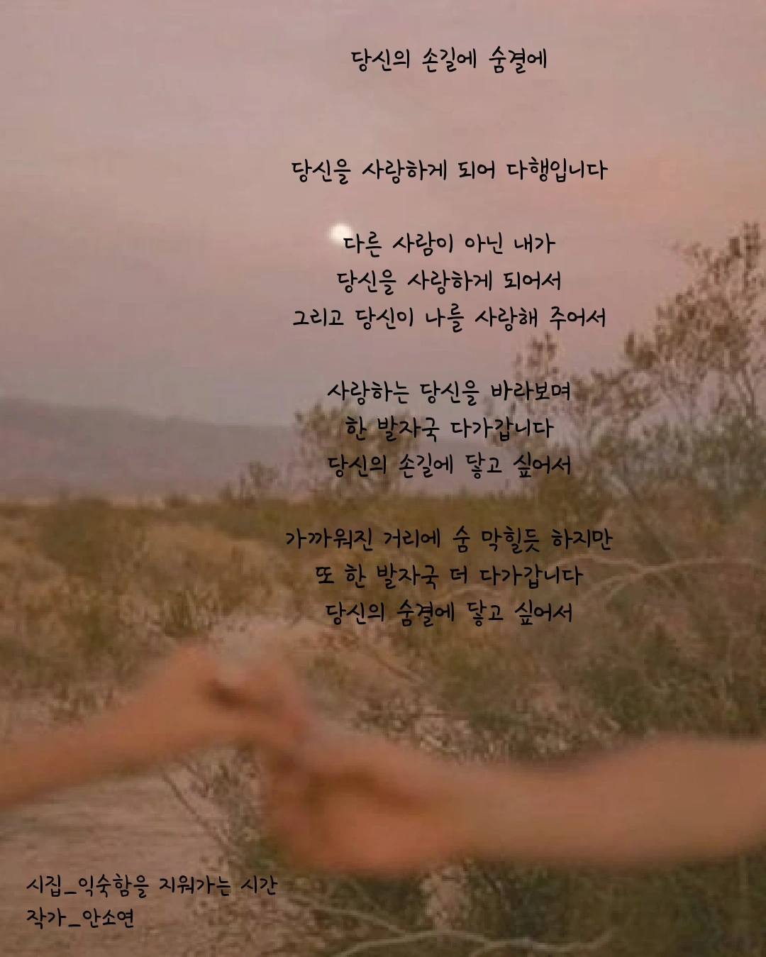 작가 안소연 입니다. 살아가는 길목마다 피어나는 무거우면서 가볍기도 한 고민들을 함께 공감하며 위로해주고 싶습니다. 이 글들이 당신의 손에 그리고 당신의 마음 깊이 닿기를...