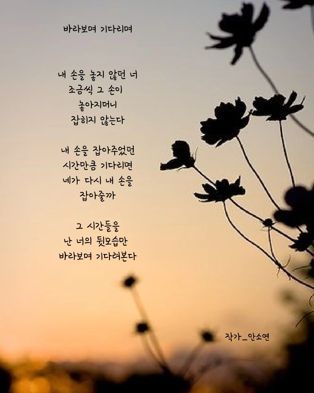 작가 안소연 입니다. 살아가는 길목마다 피어나는 무거우면서 가볍기도 한 고민들을 함께 공감하며 위로해주고 싶습니다. 이 글들이 당신의 손에 그리고 당신의 마음 깊이 닿기를...