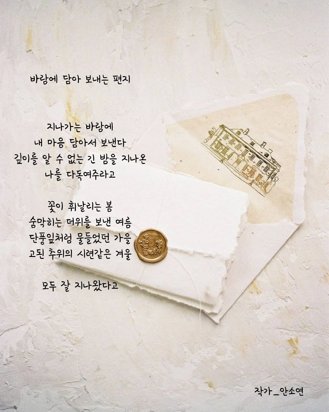 작가 안소연 입니다. 살아가는 길목마다 피어나는 무거우면서 가볍기도 한 고민들을 함께 공감하며 위로해주고 싶습니다. 이 글들이 당신의 손에 그리고 당신의 마음 깊이 닿기를...