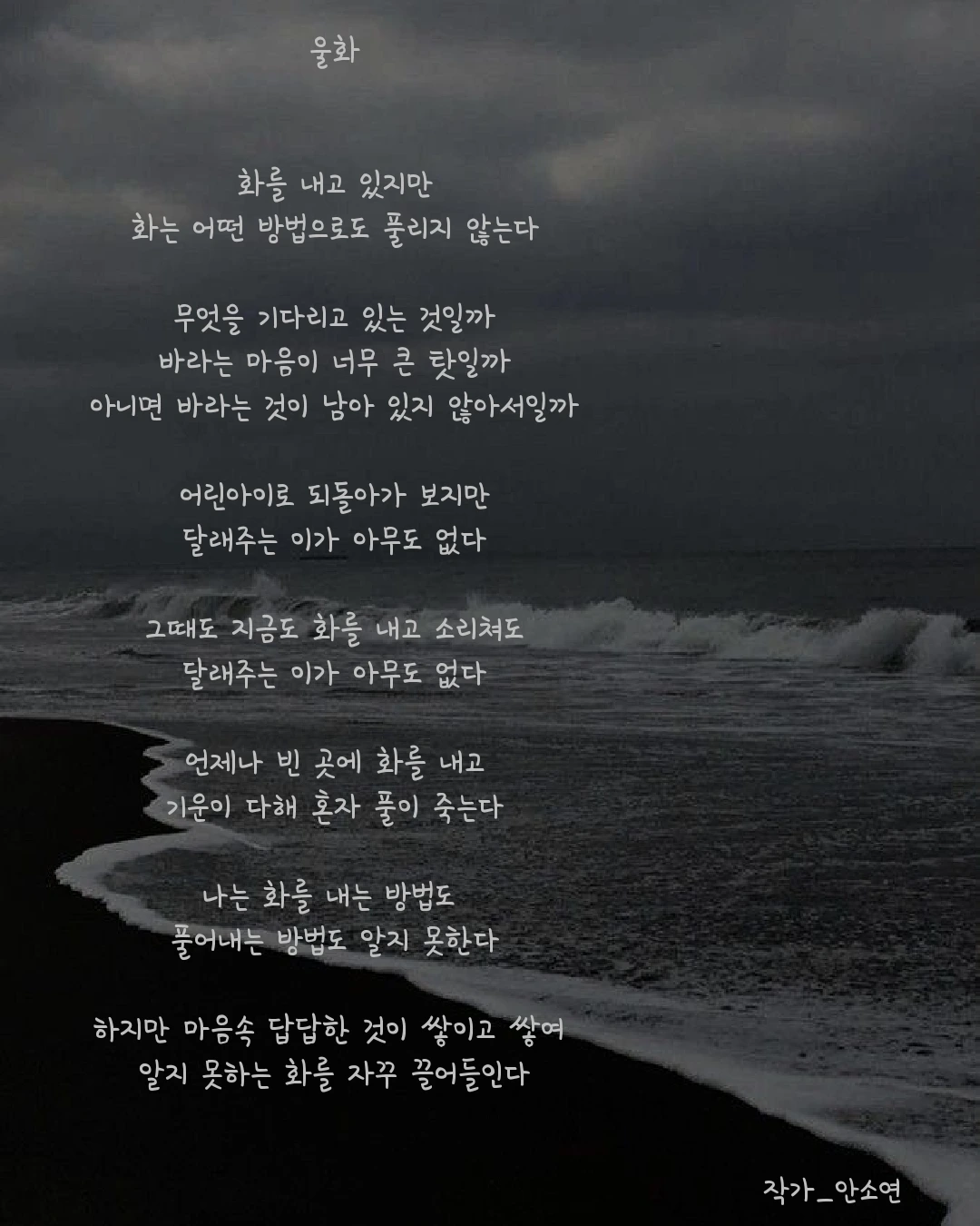 작가 안소연 입니다. 살아가는 길목마다 피어나는 무거우면서 가볍기도 한 고민들을 함께 공감하며 위로해주고 싶습니다. 이 글들이 당신의 손에 그리고 당신의 마음 깊이 닿기를...