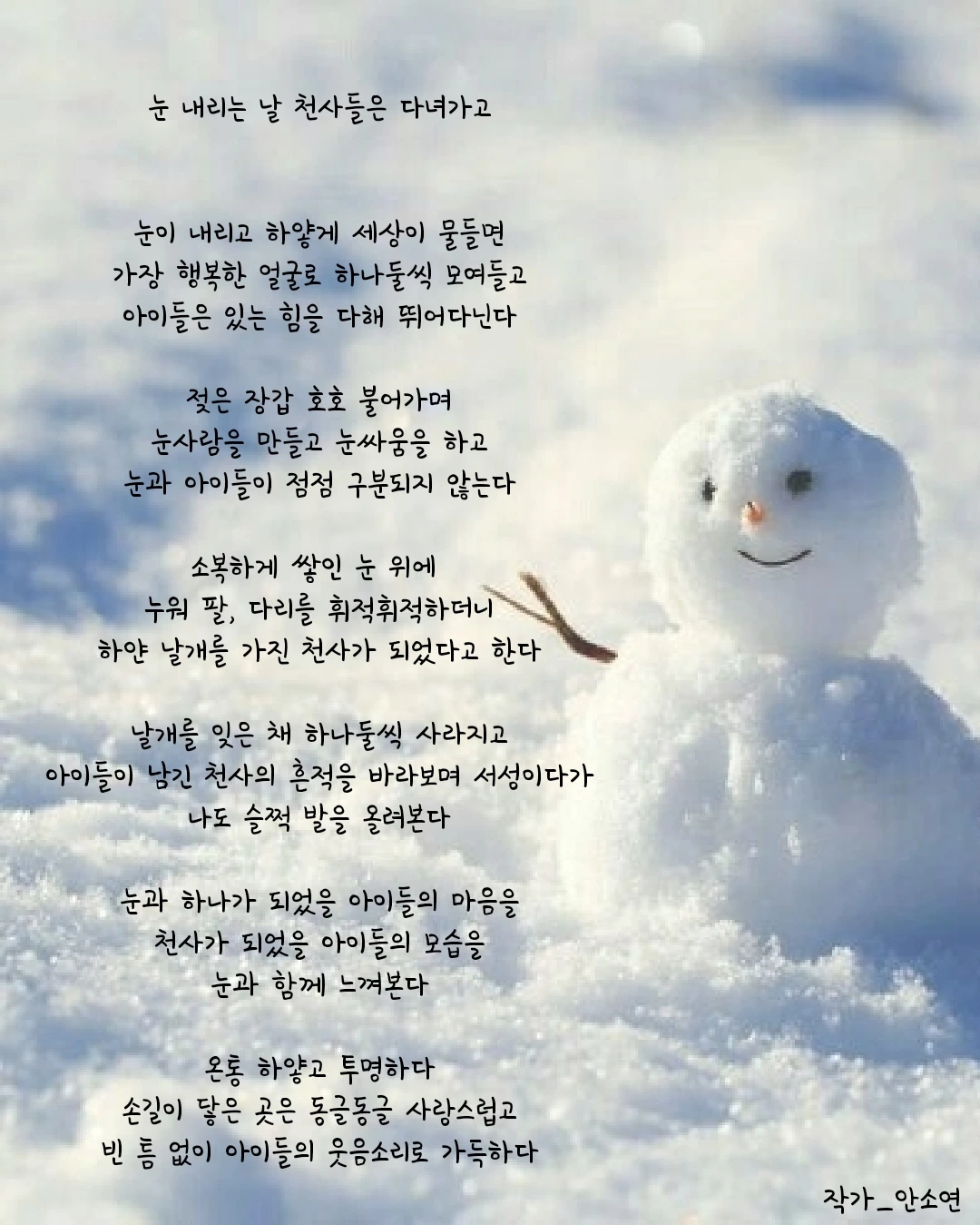 아이들이 남긴 천사의 흔적을 바라보며 서성이다가