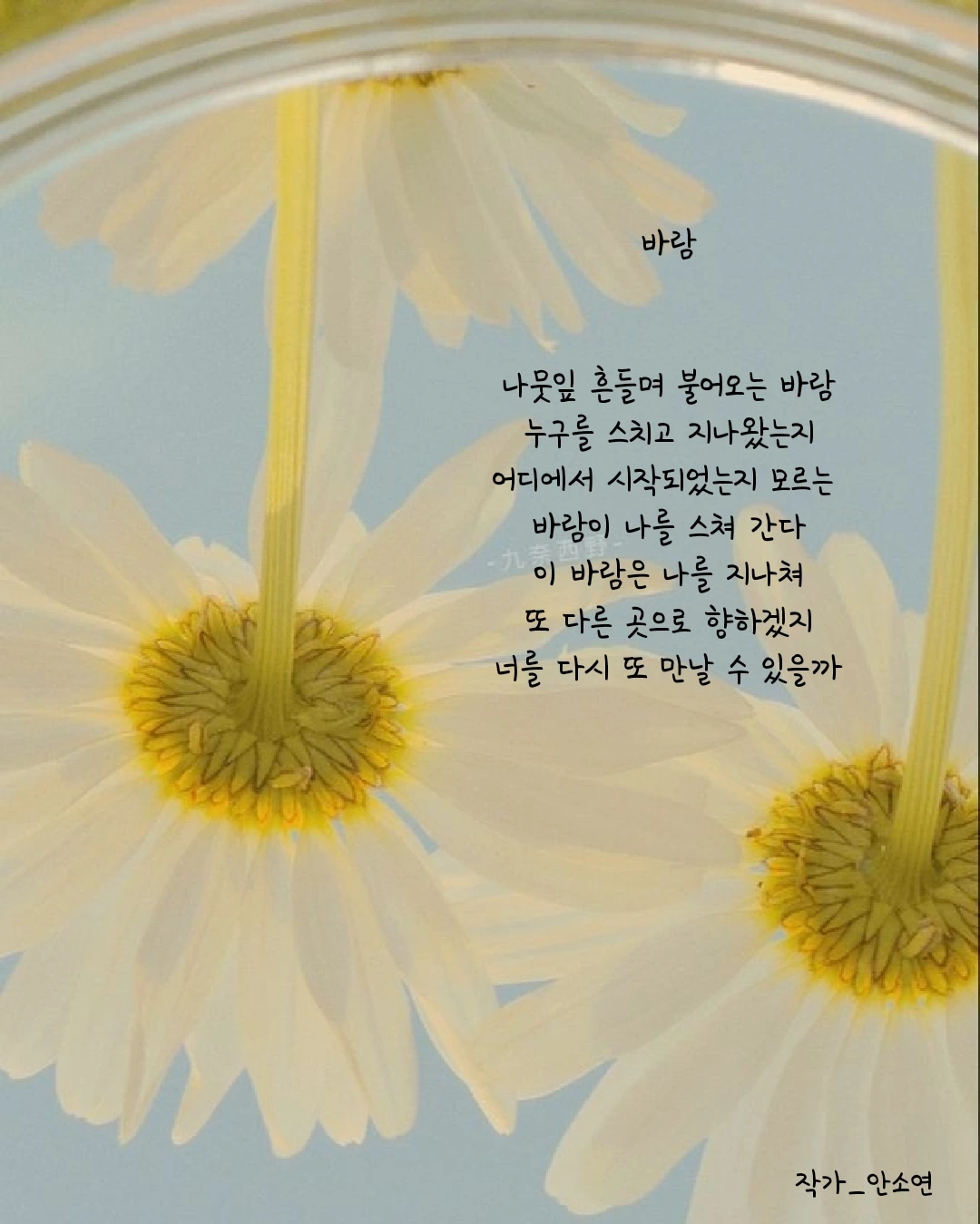작가 안소연 입니다. 살아가는 길목마다 피어나는 무거우면서 가볍기도 한 고민들을 함께 공감하며 위로해주고 싶습니다. 이 글들이 당신의 손에 그리고 당신의 마음 깊이 닿기를...