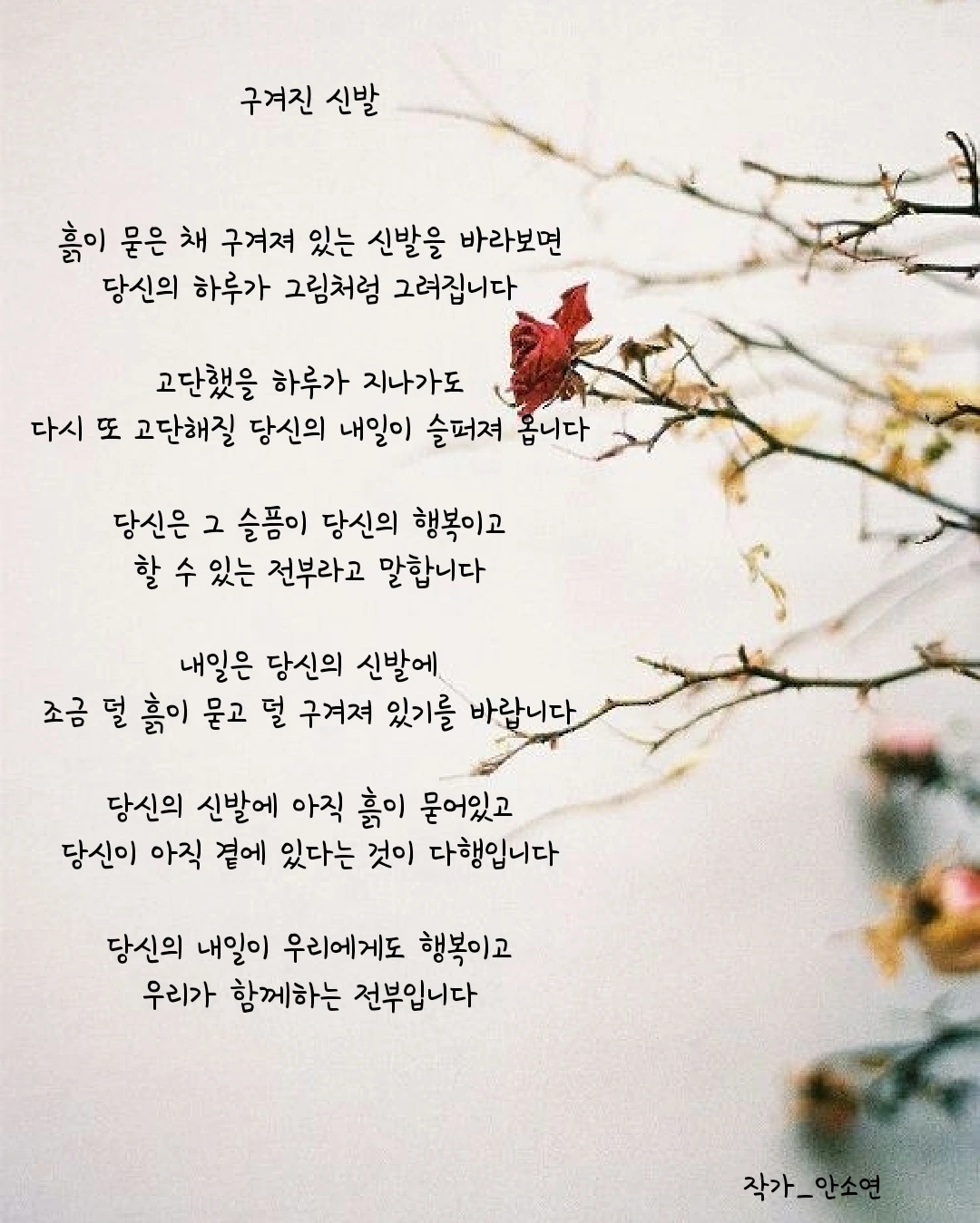 작가 안소연 입니다. 살아가는 길목마다 피어나는 무거우면서 가볍기도 한 고민들을 함께 공감하며 위로해주고 싶습니다. 이 글들이 당신의 손에 그리고 당신의 마음 깊이 닿기를...