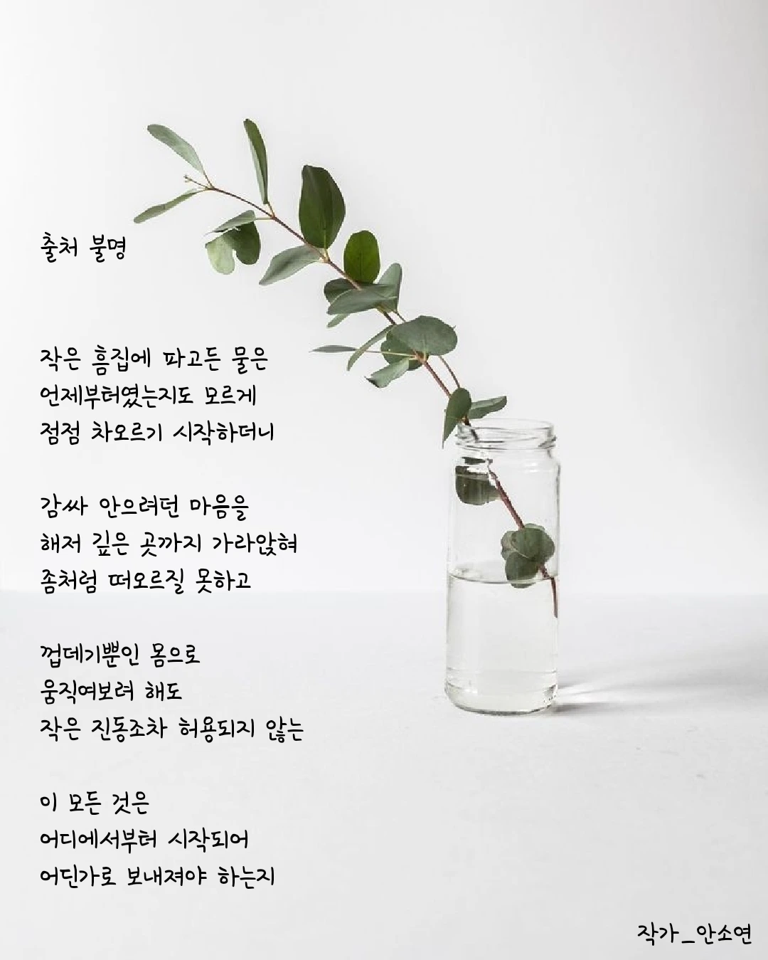 작가 안소연 입니다. 살아가는 길목마다 피어나는 무거우면서 가볍기도 한 고민들을 함께 공감하며 위로해주고 싶습니다. 이 글들이 당신의 손에 그리고 당신의 마음 깊이 닿기를...