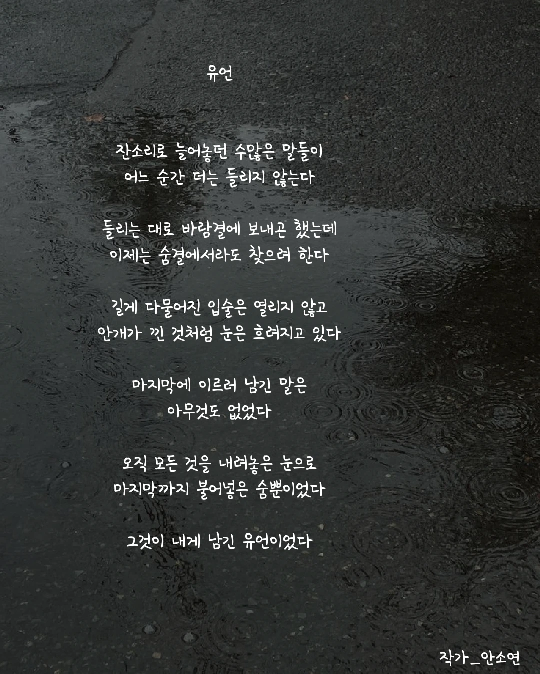 작가 안소연 입니다. 살아가는 길목마다 피어나는 무거우면서 가볍기도 한 고민들을 함께 공감하며 위로해주고 싶습니다. 이 글들이 당신의 손에 그리고 당신의 마음 깊이 닿기를...