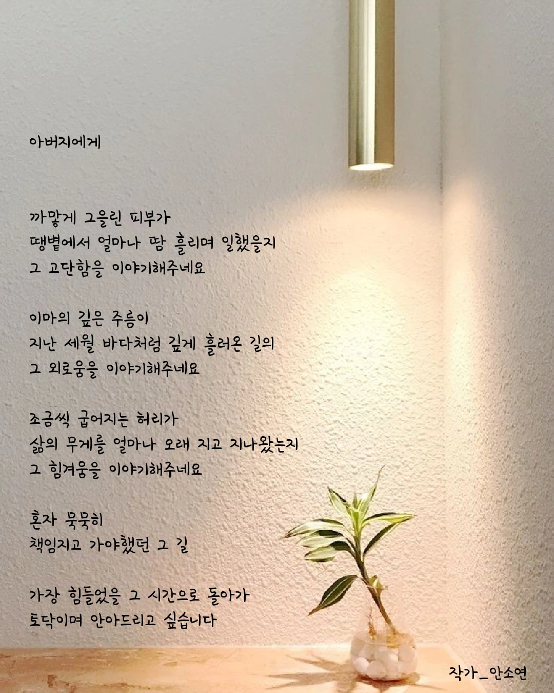 작가 안소연 입니다. 살아가는 길목마다 피어나는 무거우면서 가볍기도 한 고민들을 함께 공감하며 위로해주고 싶습니다. 이 글들이 당신의 손에 그리고 당신의 마음 깊이 닿기를...