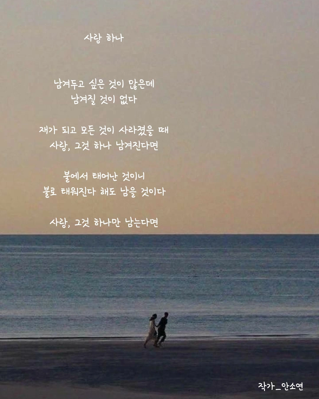 작가 안소연 입니다. 살아가는 길목마다 피어나는 무거우면서 가볍기도 한 고민들을 함께 공감하며 위로해주고 싶습니다. 이 글들이 당신의 손에 그리고 당신의 마음 깊이 닿기를...