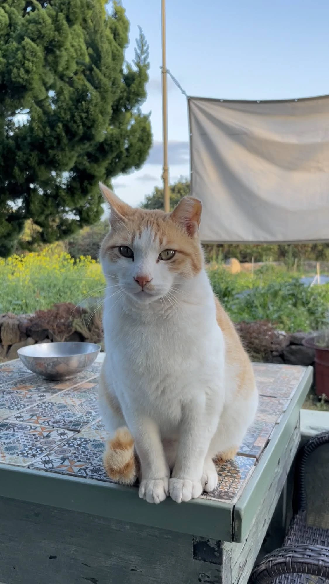 그리고 제주에서 정원이를 만났다. 처음 정원이라는 이름을 들었을 때는 꼬질이와 다르게 우아한 이름이라고 생각했다. 꽤나 길고 유연한 몸을 가진 그 길고양이는 빠져들 것 같은 초록색 눈동자에 흰 털과 주황색 무늬를 가졌다. 꼬질이는 이름 그대로 꼬질꼬질했는데 정원이는 마치 집에서 기르는 고양이처럼 깔끔했다. 귀 한쪽 끄트머리가 조금 잘려있긴 했지만 매일 구석구석 자기 몸을 핥아서인지 털에서는 윤기가 났다. 정원이는 매일 어딘가에서 나타나 마당에서 밥을 먹거나 낮잠을 잤다.
