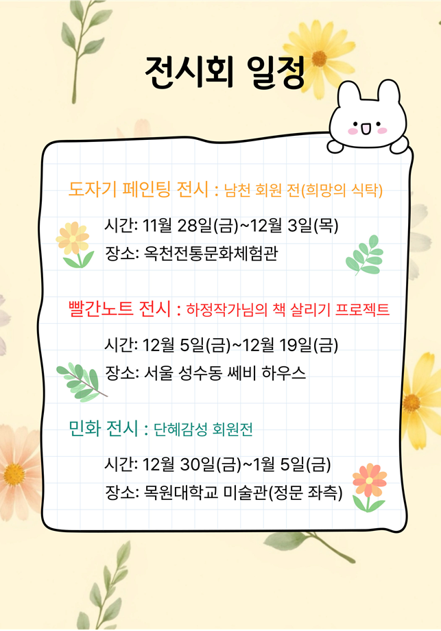3) 사진, 메모 인증 후 이 글에 '전시 다녀왔습니다'라는 댓글을 남겨주시면 확인에 큰 도움이 됩니다.
