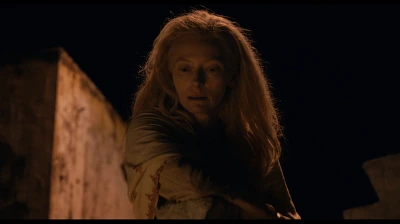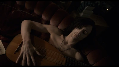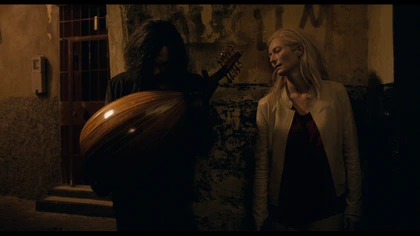 그렇게 하여 모로코에 도착한 두 뱀파이어는 위기를 맞는다. 그들에게 오염되지 않은 피를 구해주리라 믿었던 나이든 뱀파이어 말로우(존 허트)가 정작 그 자신이 오염된 피를 마셨다가 죽음을 맞게 된 것이다. 그는 임종 직전 아담과 이브에게 얼마 남지 않은 마지막 피를 건네준다. 아담과 이브는 그의 죽음으로 인한 충격으로 멍하니 벽에 기대어 서 있다. 두 뱀파이어는 막막하다. 이제 어떻게 오염되지 않은 피를 구해야 하지? 그런데 그 때 이브가 좋은 생각이 났다면서 아담이 가진 돈을 모두 받아서 사라진다. 그녀에게 피를 구해올 다른 방법이 있는 걸까. 그런데 아담이 여가수의 노래를 감상하고 있는 사이 그녀가 사온 것은 엉뚱하게도 류트다(b1). 게다가 그 류트는 아담이 총알을 만들었던 것과 같은 소재로 만들어진 것이다. 같은 소재로 만들어진 전혀 다른 두 개의 상징적인 사물, 총알과 류트. 그녀는 유머러스한 방식으로 아담을 독려한다. 아직 희망이 있다. 분명히! (내가 그녀를 이기적이라고 말했던 걸 서둘러 취소해야 겠다. 그녀는 마지막까지 아담을 행복하게 해주려 노력한다!)