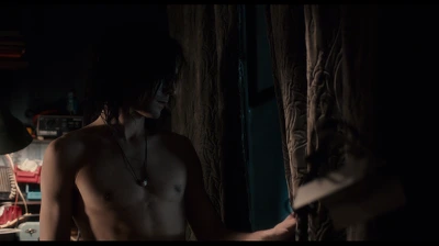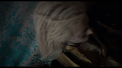 둘은 이제 이국적 문양으로 장식된 벽 앞에 앉아 마지막으로 피를 나눠 마신다(b2). 잠시 침묵이 흐르고 참을성을 잃은 아담이 묻는다. "우리 이제 끝난 거지?" 그런데 그 순간 그들 앞에 정열적으로 키스를 나누는 연인이 나타난다. 기적적으로, 마치 최초의 연인인 아담과 이브를 구하려는 듯. 원거리 유령작용. 아담과 이브는 그들의 피를 조금만 마시기로 한다. 이건 아마도 두 가지 의미일 것이다. 사랑하는 연인의 피는 오염되지 않았다. 그리고 그들은 (영화상으로는 아담과 이브에게 물림으로써)사랑을 통해 일종의 영생을 얻게될 것이다. 이때의 영생은 영원히 산다는 의미가 아니라 삶이 영원할 것처럼 매순간을 살아낸다는 의미이다. 희망없는 세계에서 끝없이 서로를 부축하면서 매순간 견뎌내는 반복과 그걸 통한 전진 말이다.