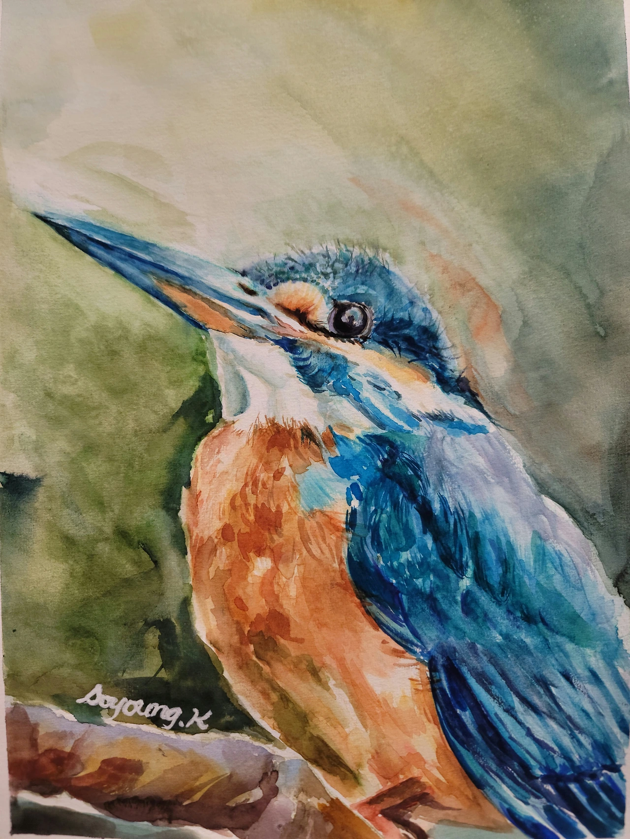 물총새를 제대로 한번 그려보고 싶었다. 도요새를 그리는 작가도 있는데 나는 물총새작가가 돼 보는 거지 모.