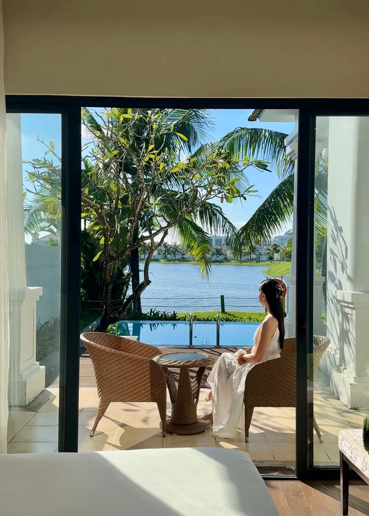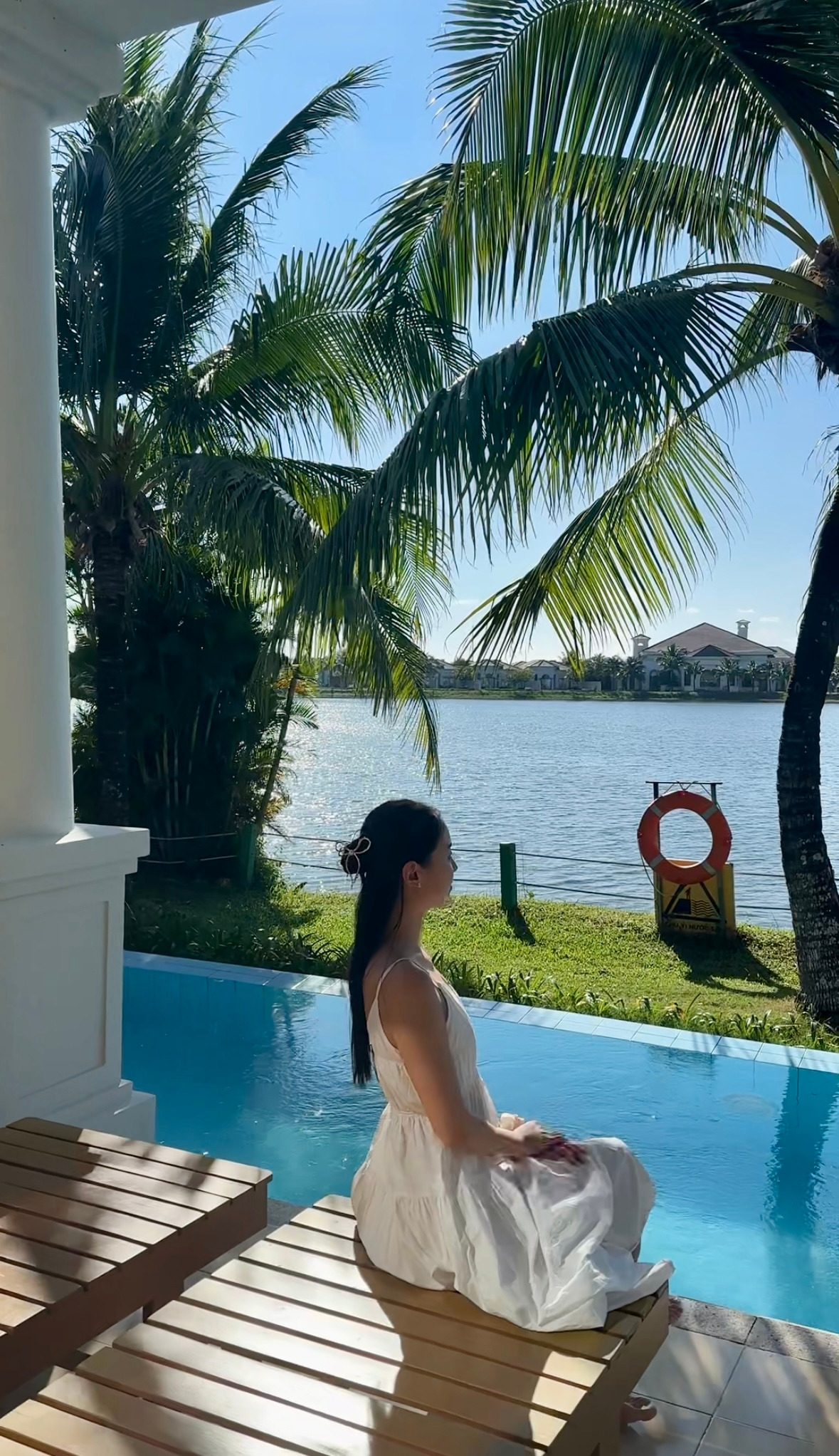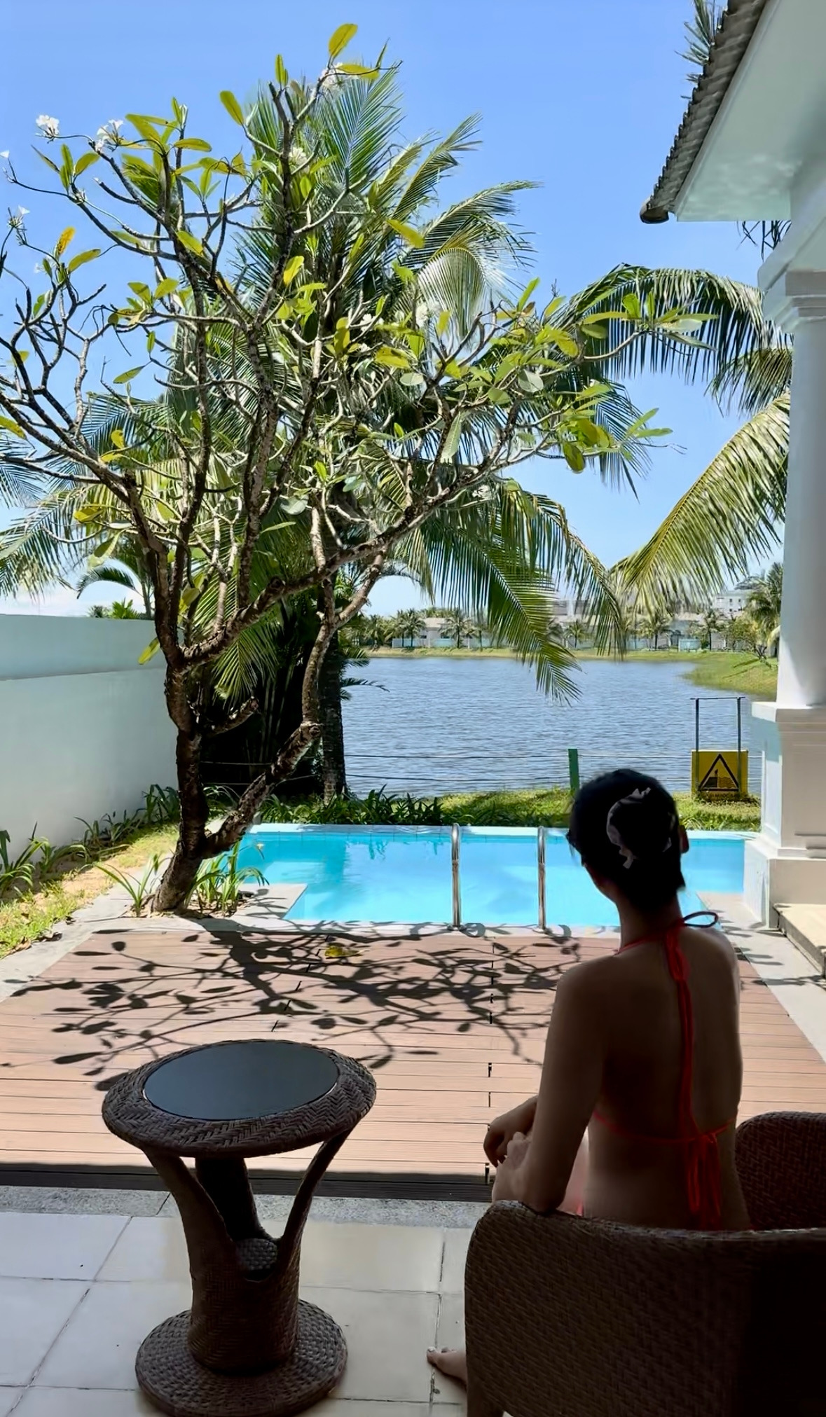 프라이빗 풀 역시 안 들어가 볼 수 없지! 마음만은 이미 풍덩이었지만 실상은 수영복을 갈아입고도 사진 찍느라 들어가기까지 참 오래 걸렸다. 여행이란 그런 거 아니겠는가.. 그렇게 썬베드에서 누워 여유롭게 시간도 보내고, 시원한 음료도 한 잔 하며 수영장에서 여유를 즐긴 후, 커다란 리조트를 속속들이 구경하고자 객실을 나왔다.