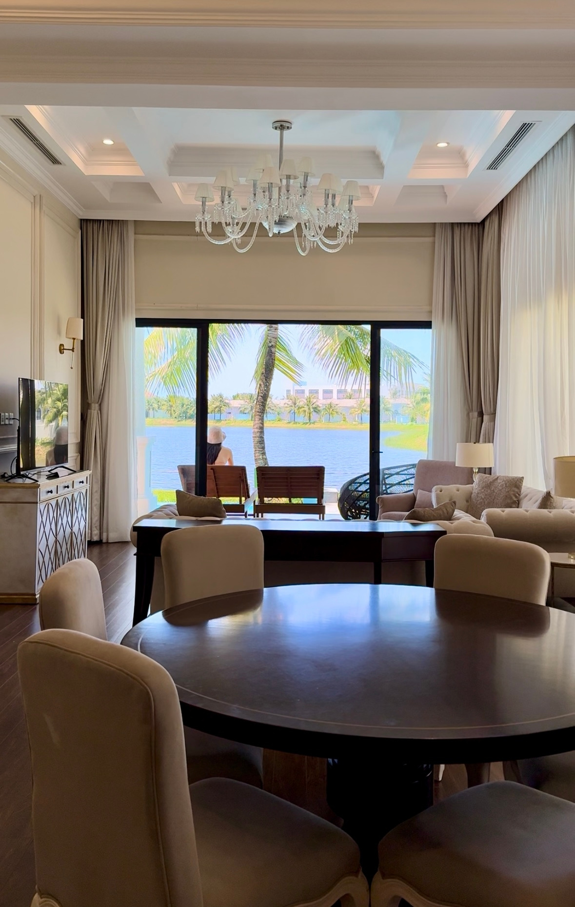외관부터 아름다운 이 객실에 들어서자, 마치 옛 유럽 영화 속 주인공이 된 기분이었다. 세로로 길게 뻗은 거실, 바로 앞에 펼쳐진 프라이빗 풀과 호수 뷰까지. 완벽하게 사적인 공간이었다. 인테리어 또한 신식은 아니지만 고풍스러운 프렌치 감성이 묻어났다. 내가 묵은 객실은 기준 인원 6인실로 방이 무려 3개, 각각의 방에 화장실도 따로 있었다. 한참을 구경하며 셔터를 눌러댔다.