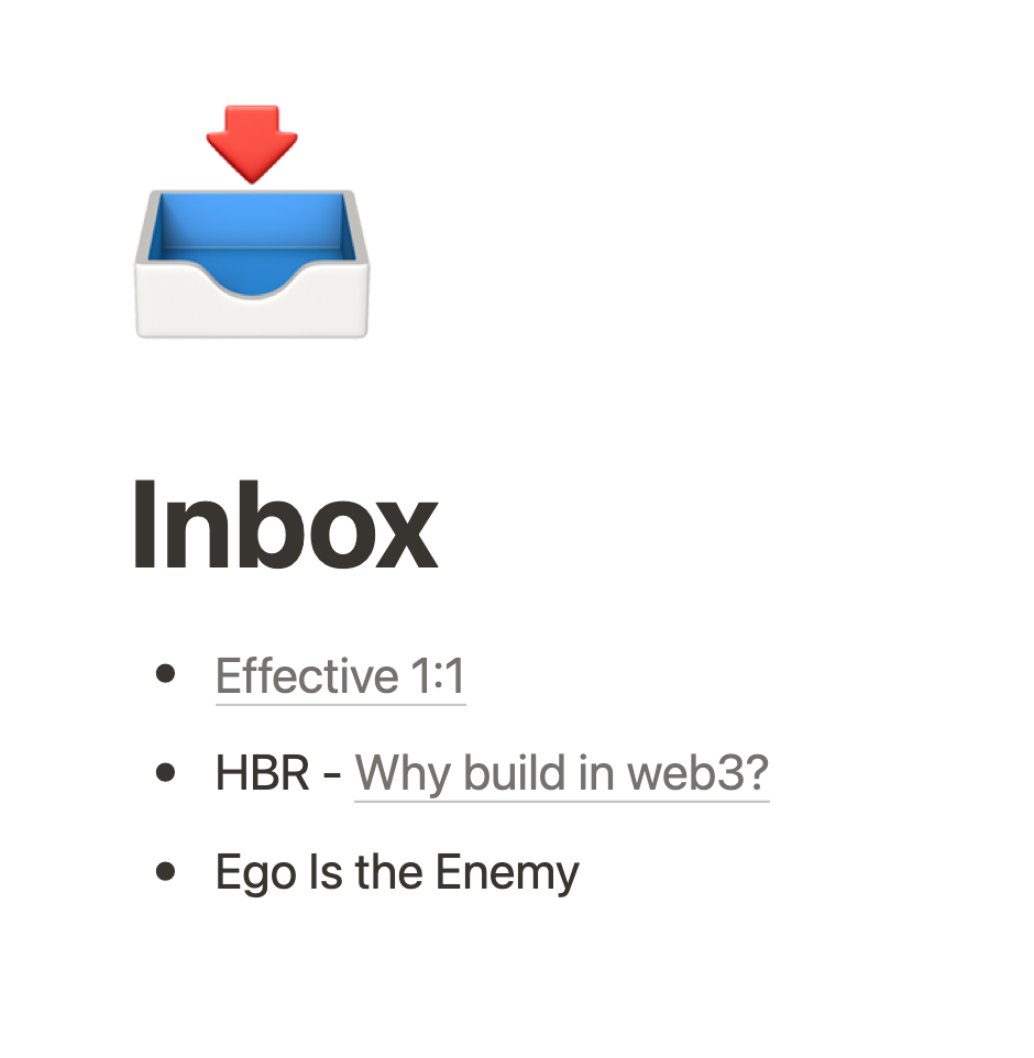 예를 들어, Inbox 에 있는 아이템을 다 읽고 나에게 와닿는 내용을 요약한 후 다음과 같이 분류한다.