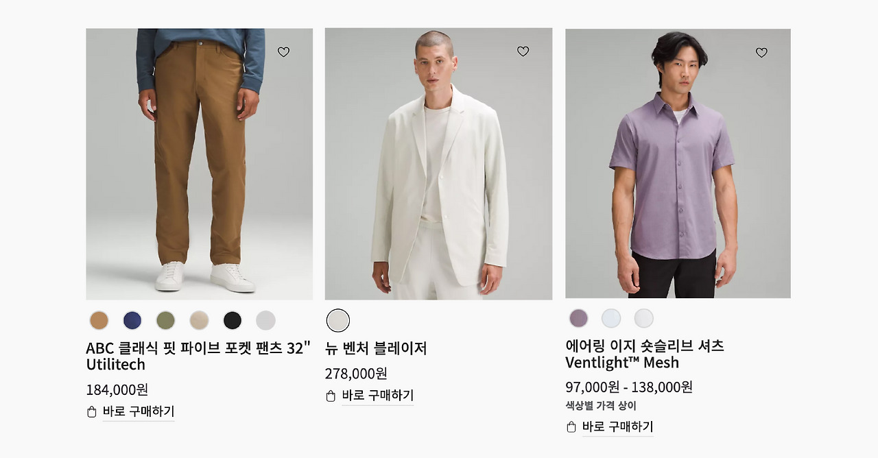 이러한 시도는 룰루레몬이었기에 가능하다고 보입니다. 이들은 뛰어난 소재와 감각적인 디자인으로 에슬레저룩의 대표적인 브랜드로 자리 잡으며 소비자들에게 이미 기능성과 일상성 모두를 인정받았기 때문입니다.