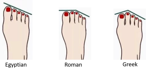 한국인의 60%가 맨 좌측 이집트형에 속한다고 하는데요, 제 발을 내려다보니 그릭형이군요.