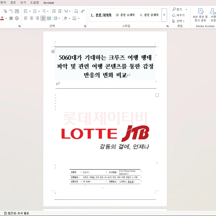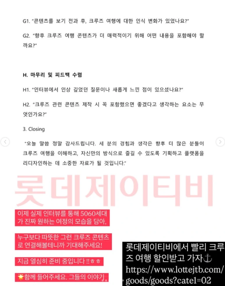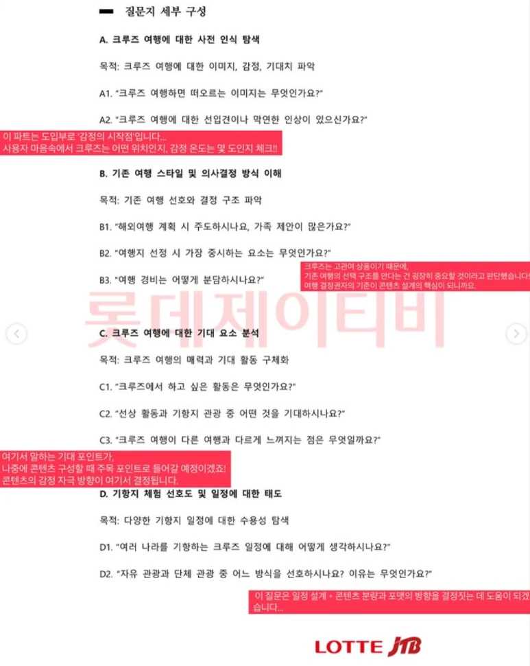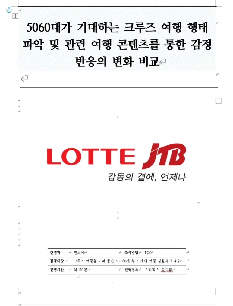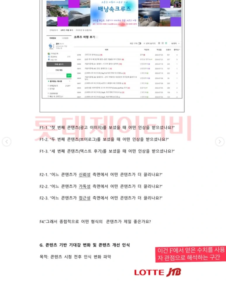 – 롯데제이티비 크루즈 관련 F.G.I 질문지 제작기