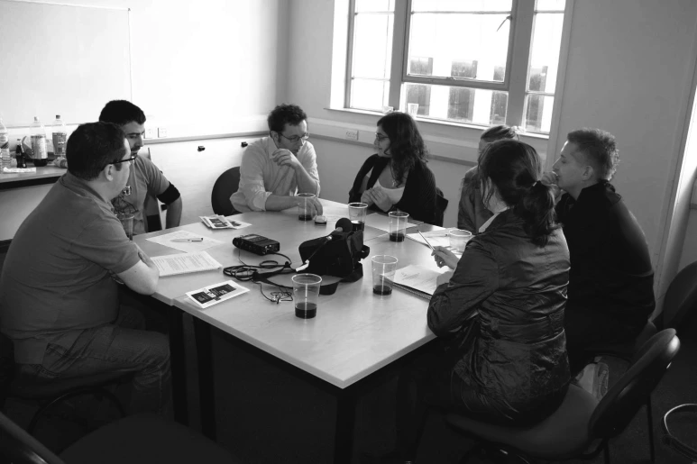 특정 주제에 대해 선택된 사람들이 모여 자유롭게 토의하는 형태의 비공식적 인터뷰 방식.