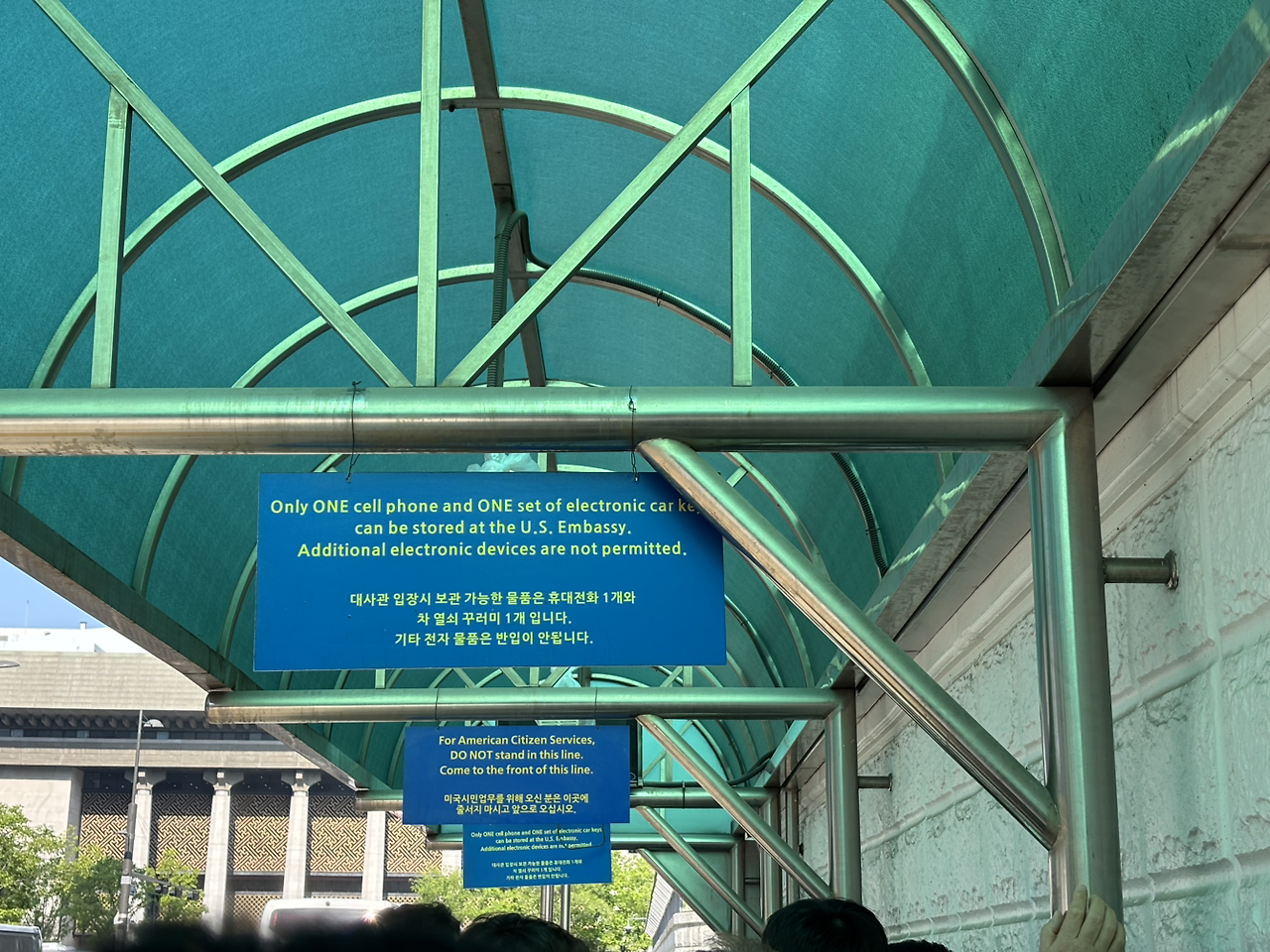 I-20, SEVIS, DS-160은 진작 만들어 놓았는데, 게으른 나머지 인터뷰 예약을 미뤄왔었다. 5월 1일 쯤에 예약을 시도했는데, 5월 전체에서 비자 면접이 5/16일과 5/30일 이렇게 딱 2 시간대 남아있었다. 가장 빠른 시간인 5/16 8:15으로 예약한 뒤, 30분 전인 7시 45분에 도착하는 걸 목표로 했느나, 광화문역의 물품보관함이 “또타라커”라는 이상한 어플로만 열 수 있도록 변경되는 통에 어플 설치하고 짐을 밑기느라 약 8시 정도부터 줄을 설 수 있었다.