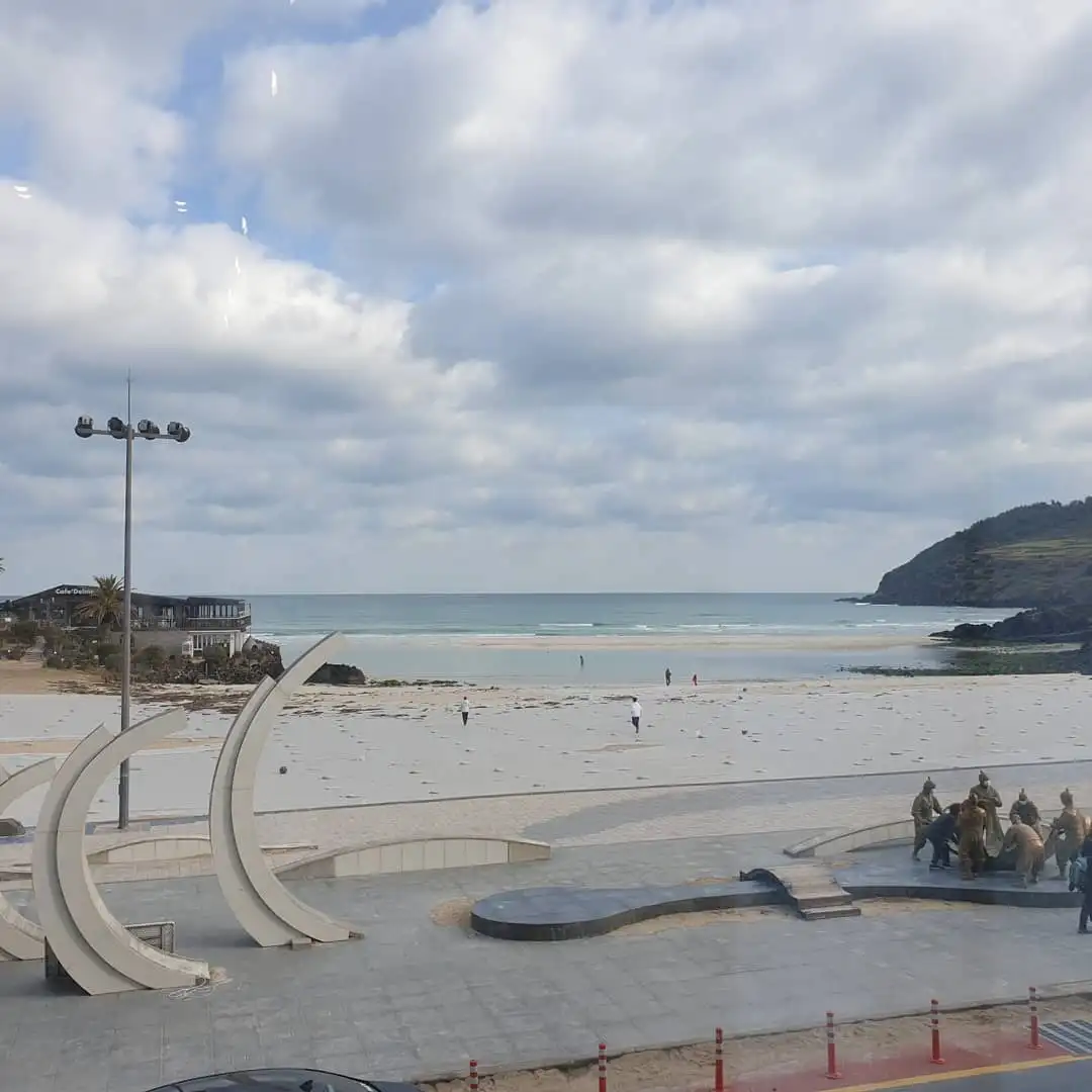 아직 저녁때도 안 되었는데 숙소로 돌아가기는 아까웠다. 나는 길을 빙 돌아 안쪽 도로로 들어갔다. 해변에서 한 블록 떨어진 함덕 거리를 구경하며 걸었다. 작은 제과점에서 빵을 두어 개 사고 저녁으로 먹을 오븐구이 치킨도 샀다. 그렇게 걸어오니 그럭저럭 저녁 시간이다. 비록 비를 쫄딱 맞은 여행 첫날이 꼴사나웠지만, 욕조에 몸을 담그면 딱이겠군, 하며 속으로 웃었다.