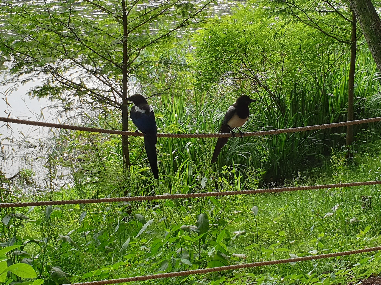 어디선가 까치 한 마리가 날아왔다. 아마 빵 냄새를 맡은 모양이다. 요즘 돌아다니는 까치들은 ‘중까치’다. 즉 완전히 자란 성체도 아니고 아직 어린 새끼도 아닌 어중간한 크기의 녀석들. 굳이 이름 붙이자면 ‘청소년 까치’라고나 할까? 그 나이 때 인간들이 그렇듯이 얘네들도 몰려다닌다. 곧 마릿수가 불어났다. 어느새 세 마리, 네 마리. 바로 앞의 호수 울타리에 앉아 관심 없는 척 시선을 돌리며 군침을 흘렸다. 평소에는 땅콩을 가지고 다니는데 하필 오늘은 두고 나왔다. 참새나 박새 정도라면 빵부스러기를 줄 텐데 까치들은 (청소년이라고 해도) 좀 크다. 저 단단한 부리로 몰려들면 곤란하다. 나는 끝내 녀석들을 외면하고 빵을 먹어치웠다.