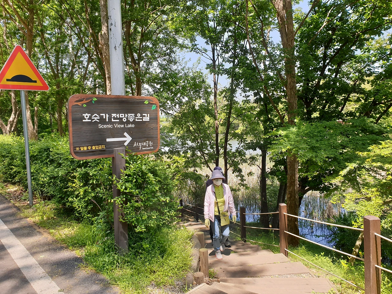 6시 50분. 집을 나섰다. 언제나처럼 도서관 옆길을 지나 찻길을 건너 청계산 쪽으로 올라갔다. 10분만 걸으면 등산로와 만난다. 하지만 오늘의 목적은 등산이 아니다. 청계산 매봉 가는 길을 지나 산 아래로 내려갔다. 대공원 가는 길이다. 정확히 말하면 일명 ‘대공원 뒷길’이다. 여기서 곧바로 가면 동물원 둘레길과 이어진다. 이른 아침이라 동물원 둘레길은 갈 수 없다. 거긴 9시부터 문을 여니까. 나는 대공원 호수 둘레길로 향했다. 동물원 정문은 공사가 한창이었다. 이제 거의 마무리되어 가는지 둘러쳤던 담장은 치웠고 공사현장이 훤히 들여다보였다. 머지않아 새로 단장한 동물원 정문을 볼 수 있을 것이다.