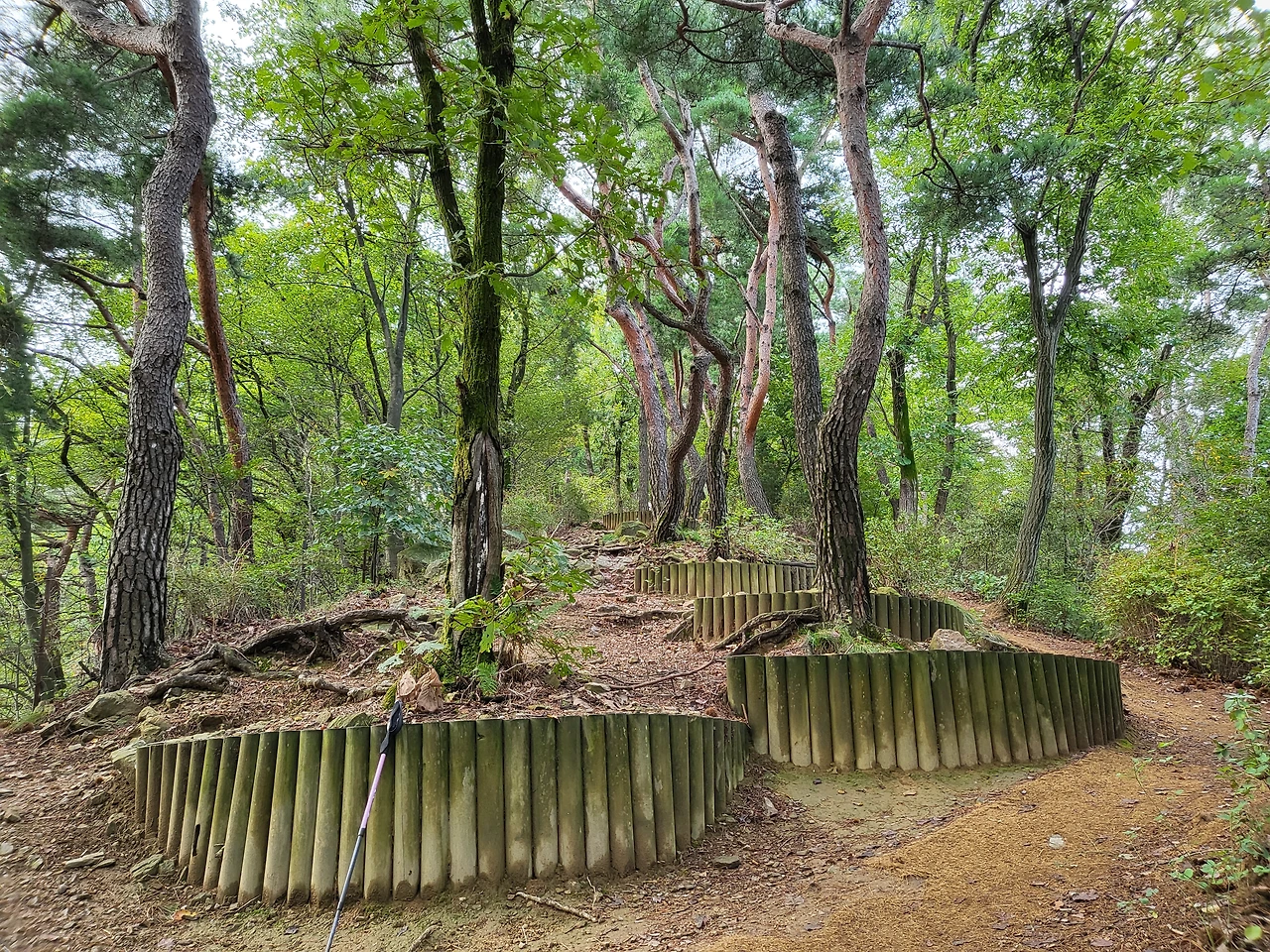 다시 소나무 군락지에 도착했다. 아까 지나왔던 비탈길 소나무 말이다. 여기서 자칫하면 코스를 벗어날 수 있다. 언젠가 남편과 함께 왔을 때, 오른쪽 샛길을 못 보고 지나쳐버렸다. 떠들다가 정신을 차리고 보니 어느새 계단을 내려가고 있었다. 분명 옆길로 빠지려고 했는데, 여긴 언제 온 걸까? 그날 종아리엔 어김없이 알이 배겼다. 오늘은 제대로 가보자.